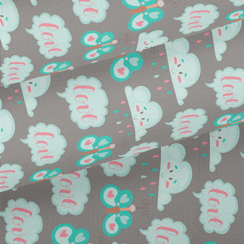 Cartoon Butterflies And Clouds Chiffon