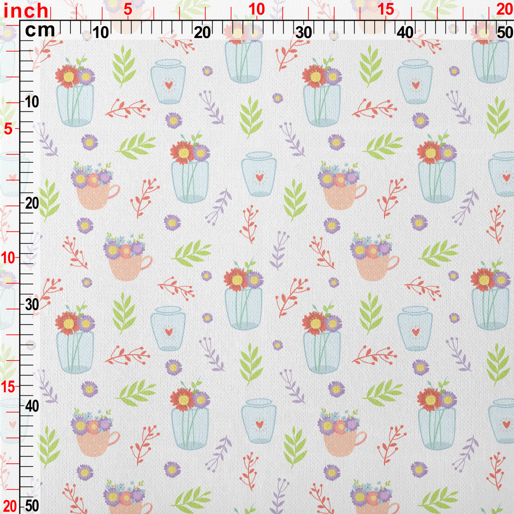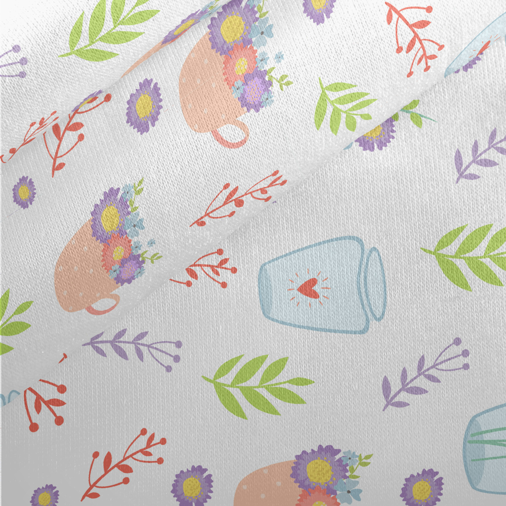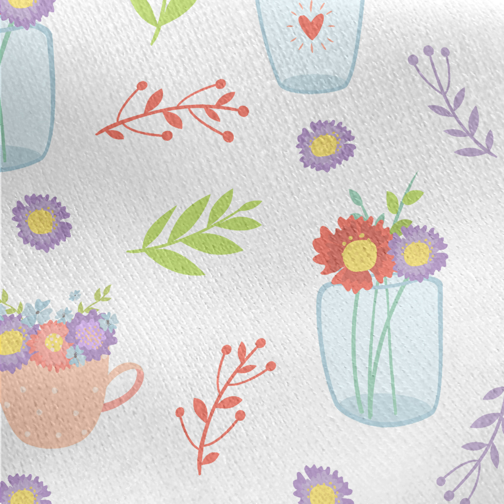 Transparent Vase Flowers Jersey Backed Fleece