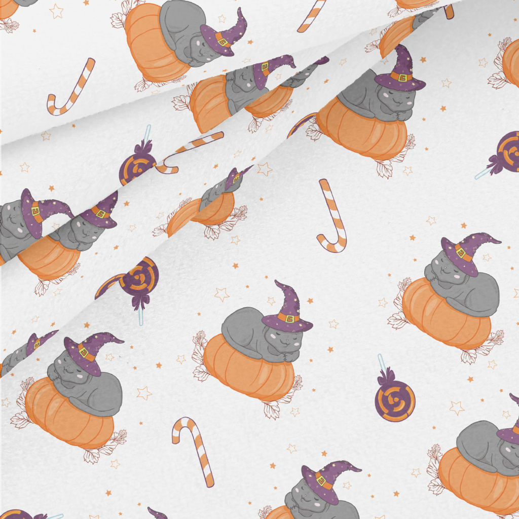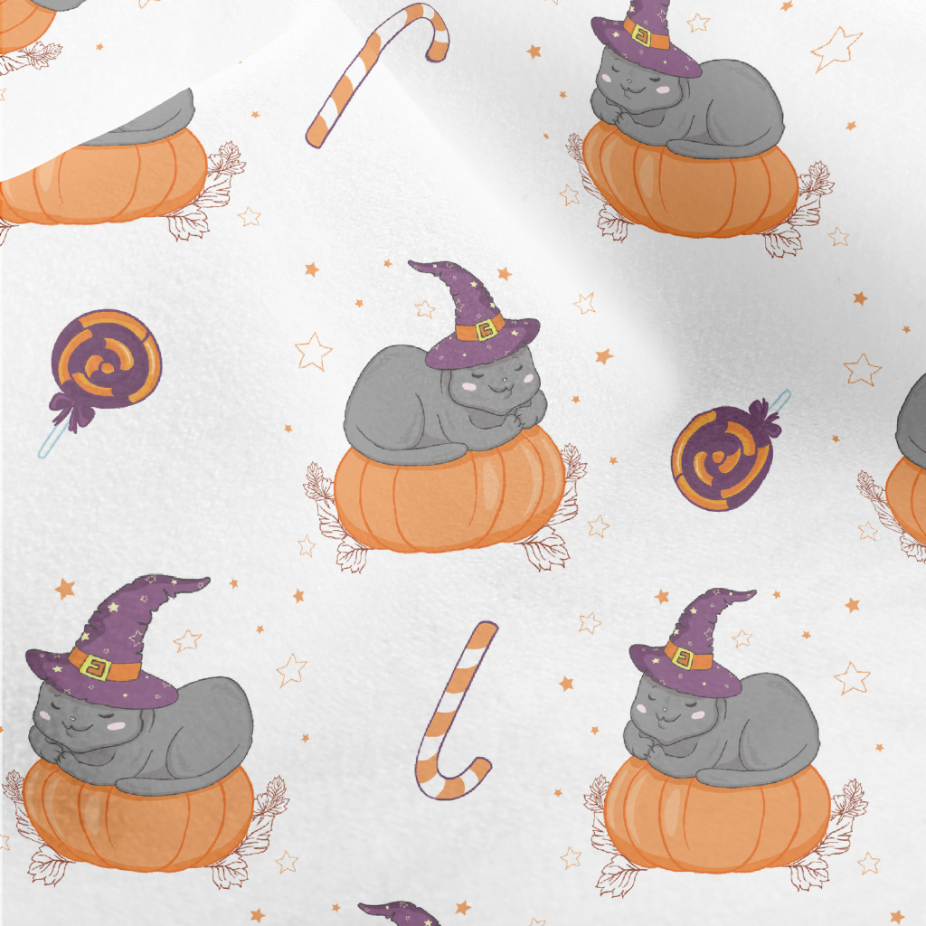 Cat In Witch Hat And Pumpkin Micro Fleece
