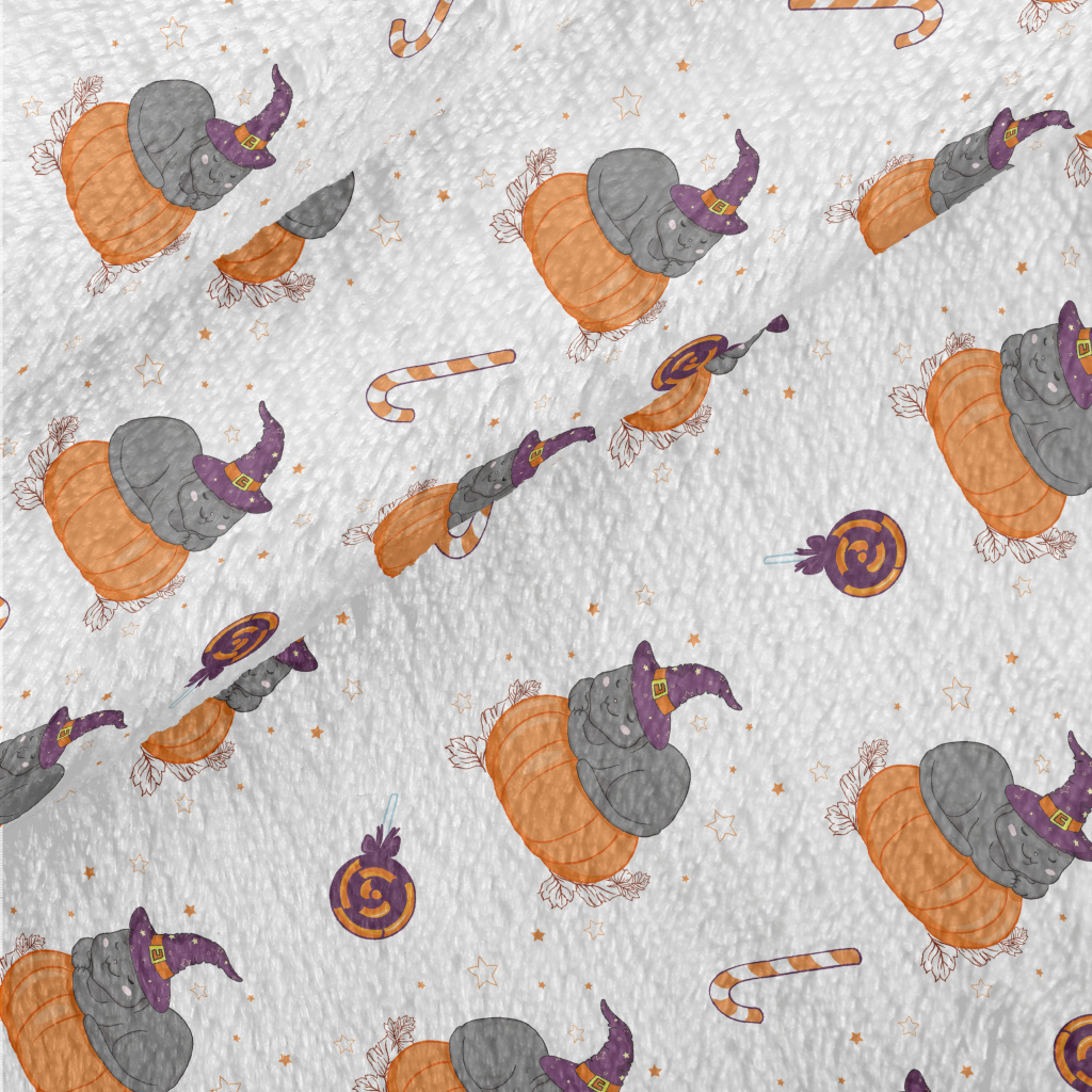 Cat In Witch Hat And Pumpkin Minky
