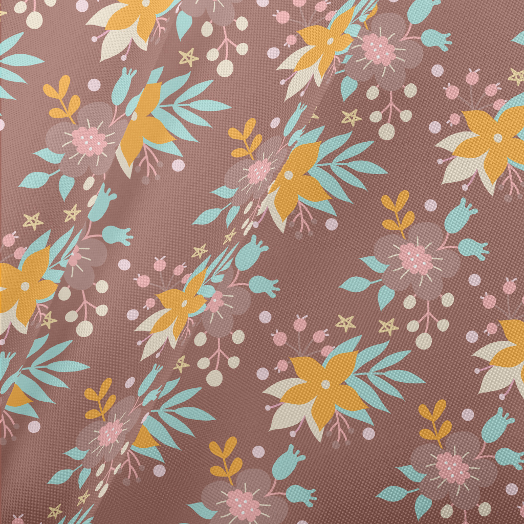 Bright Flowers And Grass Pongee