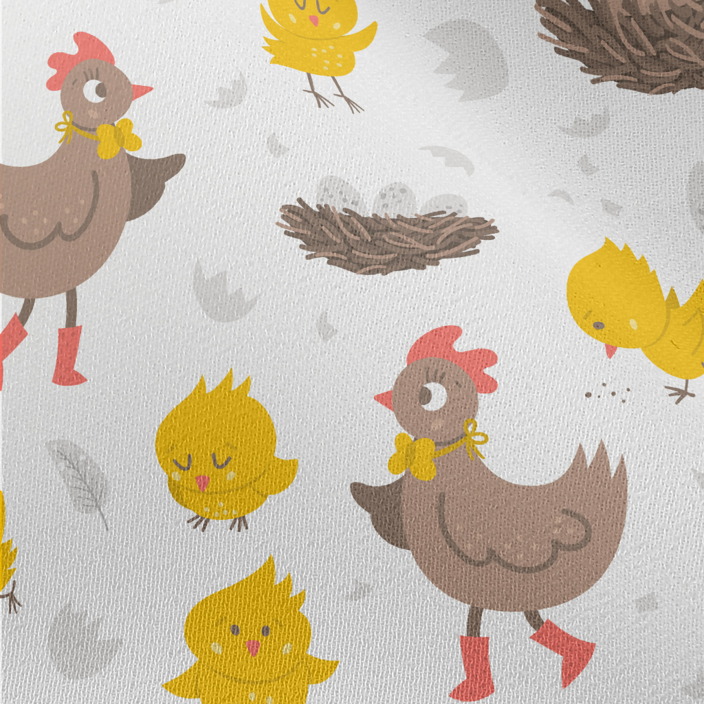 Rooster And Chicken Family Chiffon