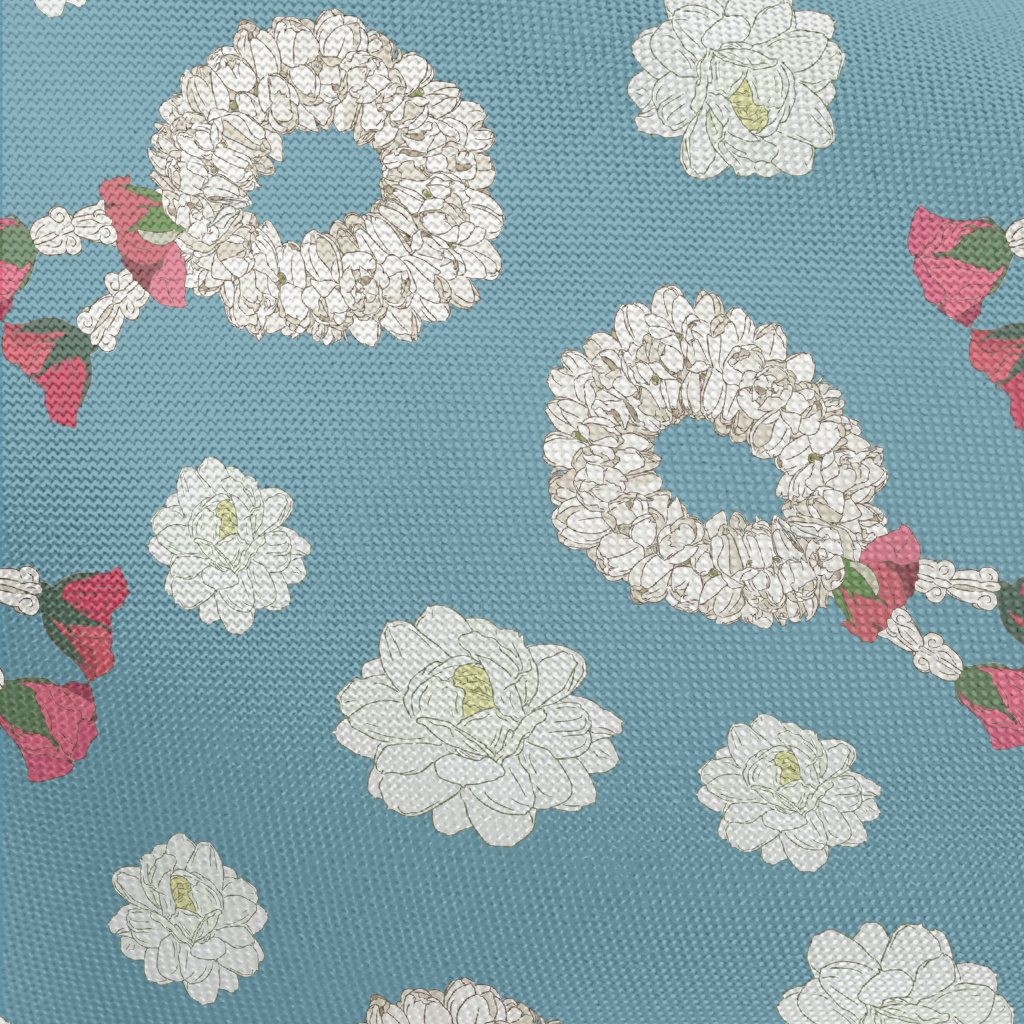 White Flower Wreath Pongee