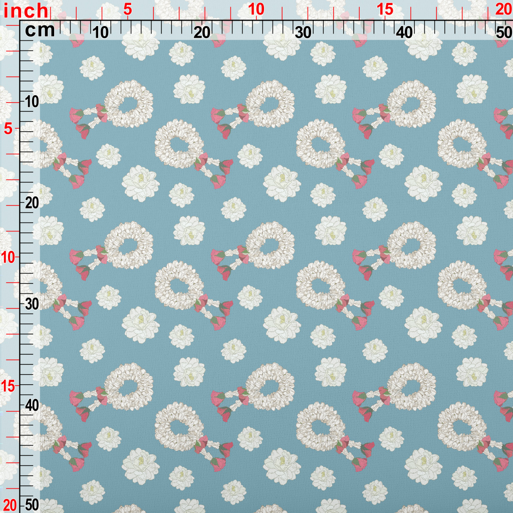 White Flower Wreath Lightweight Cotton Poplin
