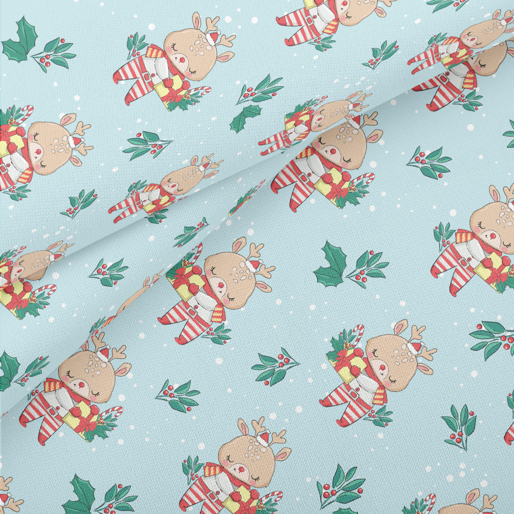 Christmas Reindeer Holding Gif Lightweight Cotton Poplin