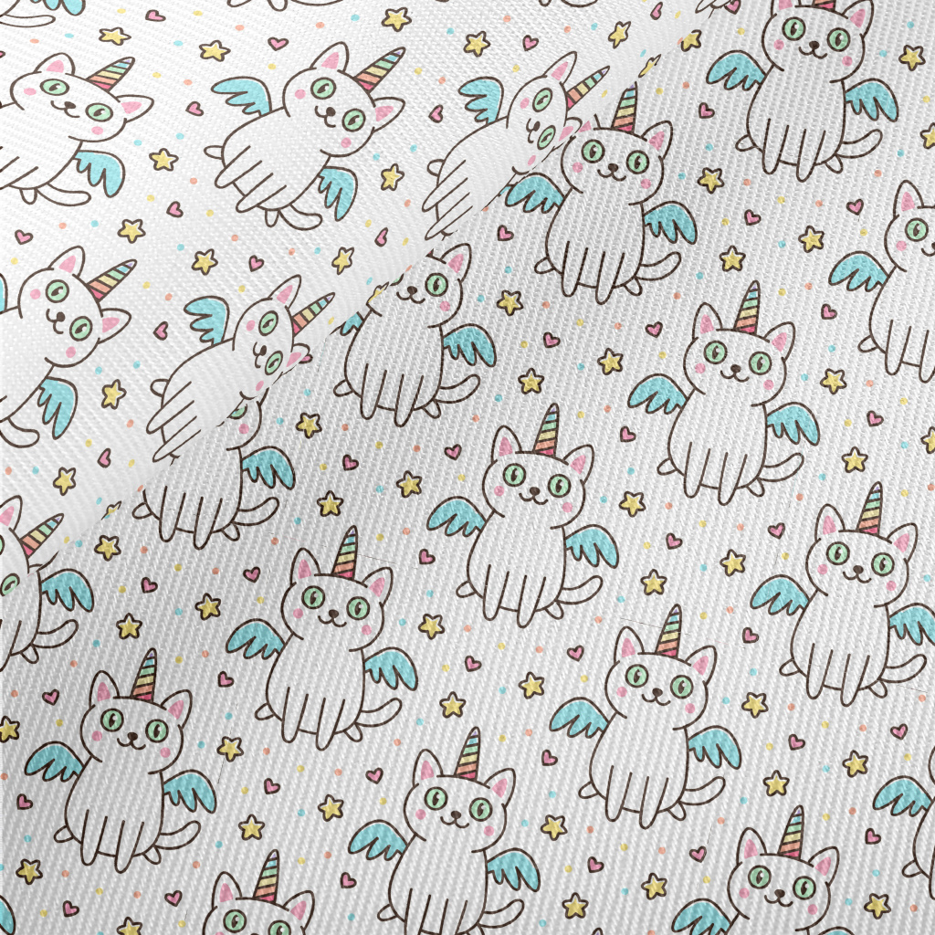 Rainbow Unicorn Kitten Midweight Cotton Poplin