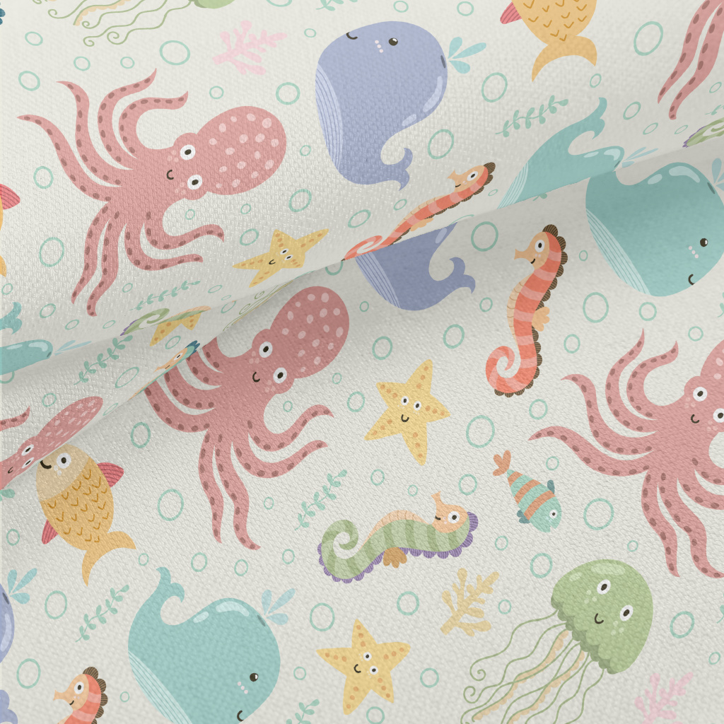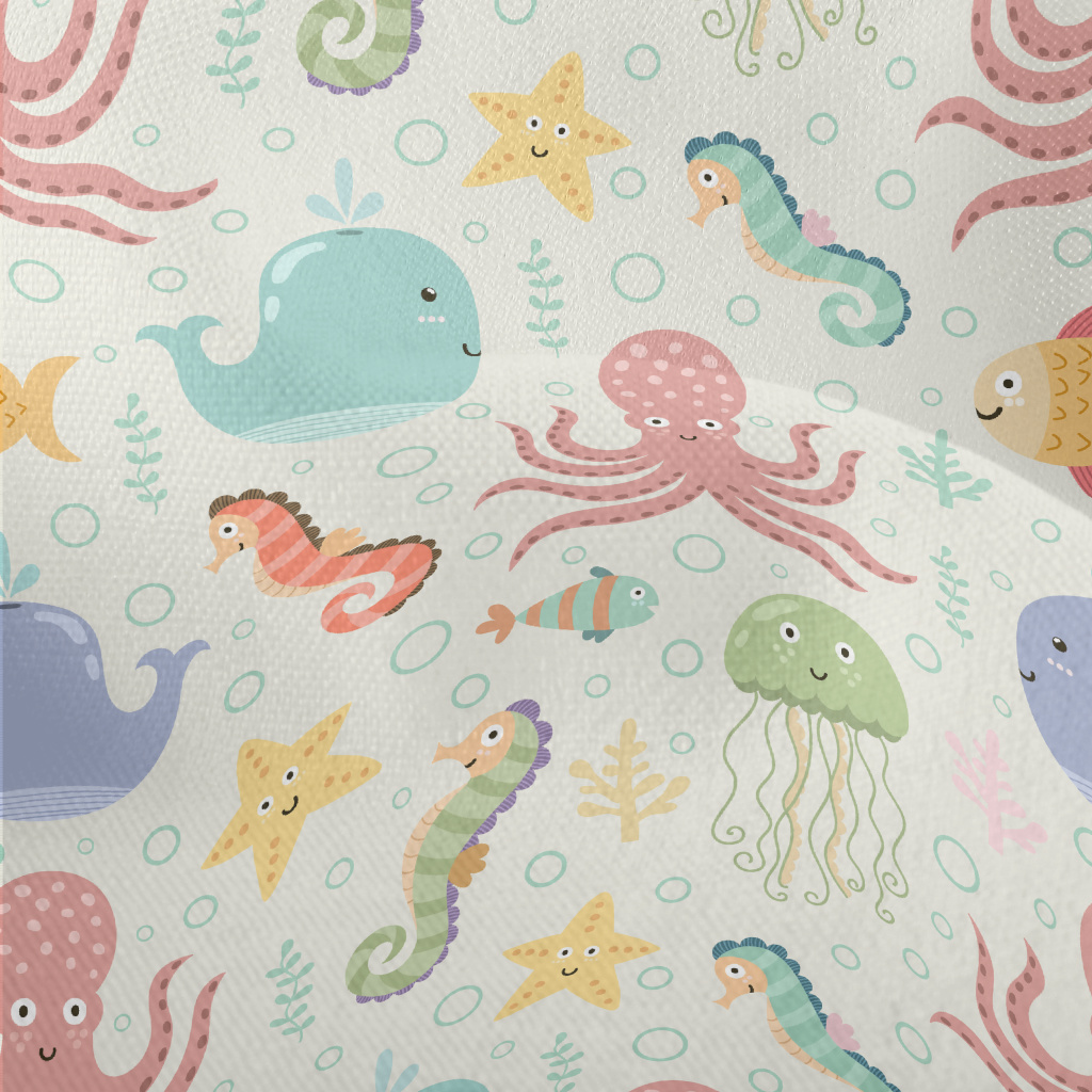 Colorful Underwater Creatures Lightweight Performance Linen