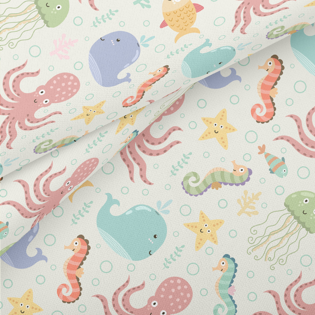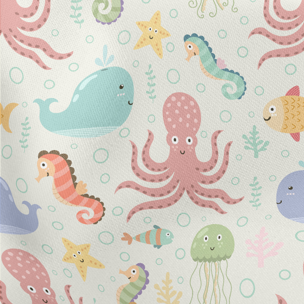 Colorful Underwater Creatures Lightweight Cotton Poplin