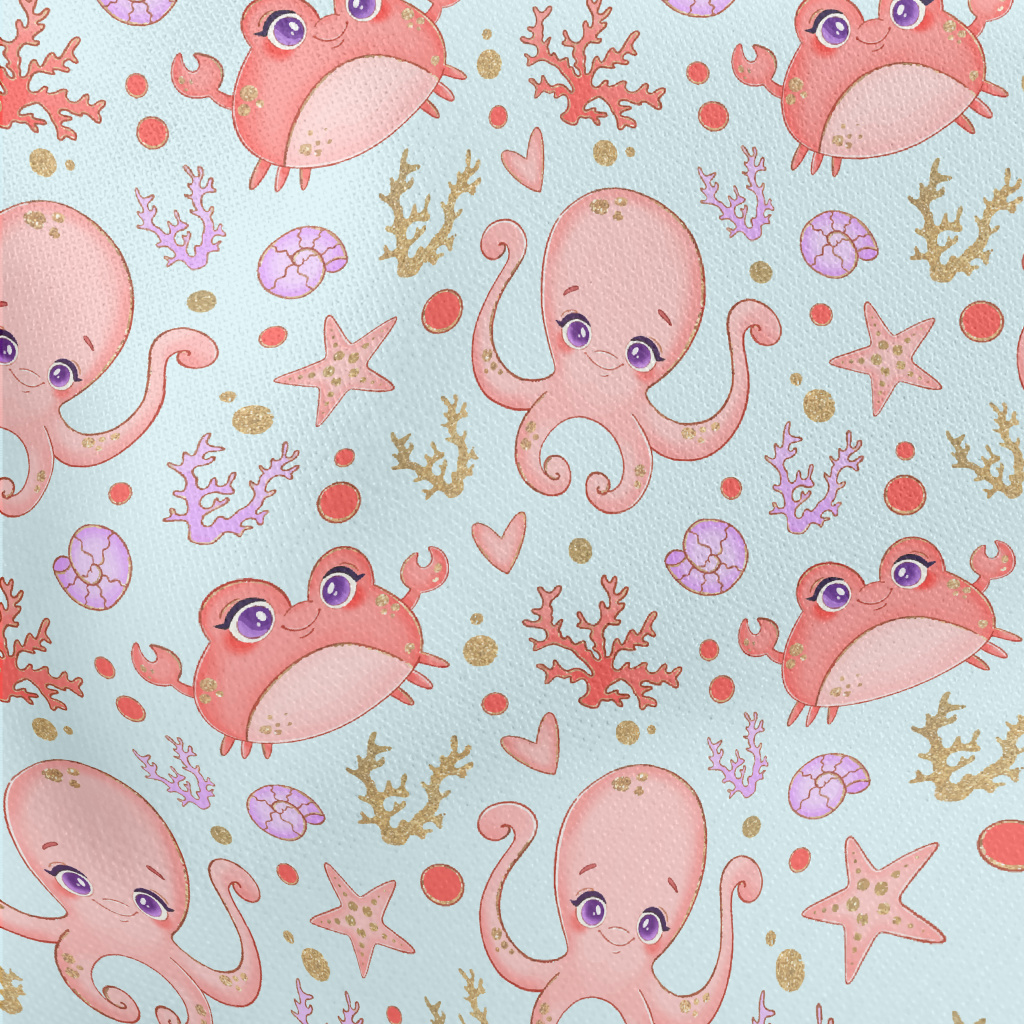 Big Eyed Crab Octopus Lightweight Cotton Poplin