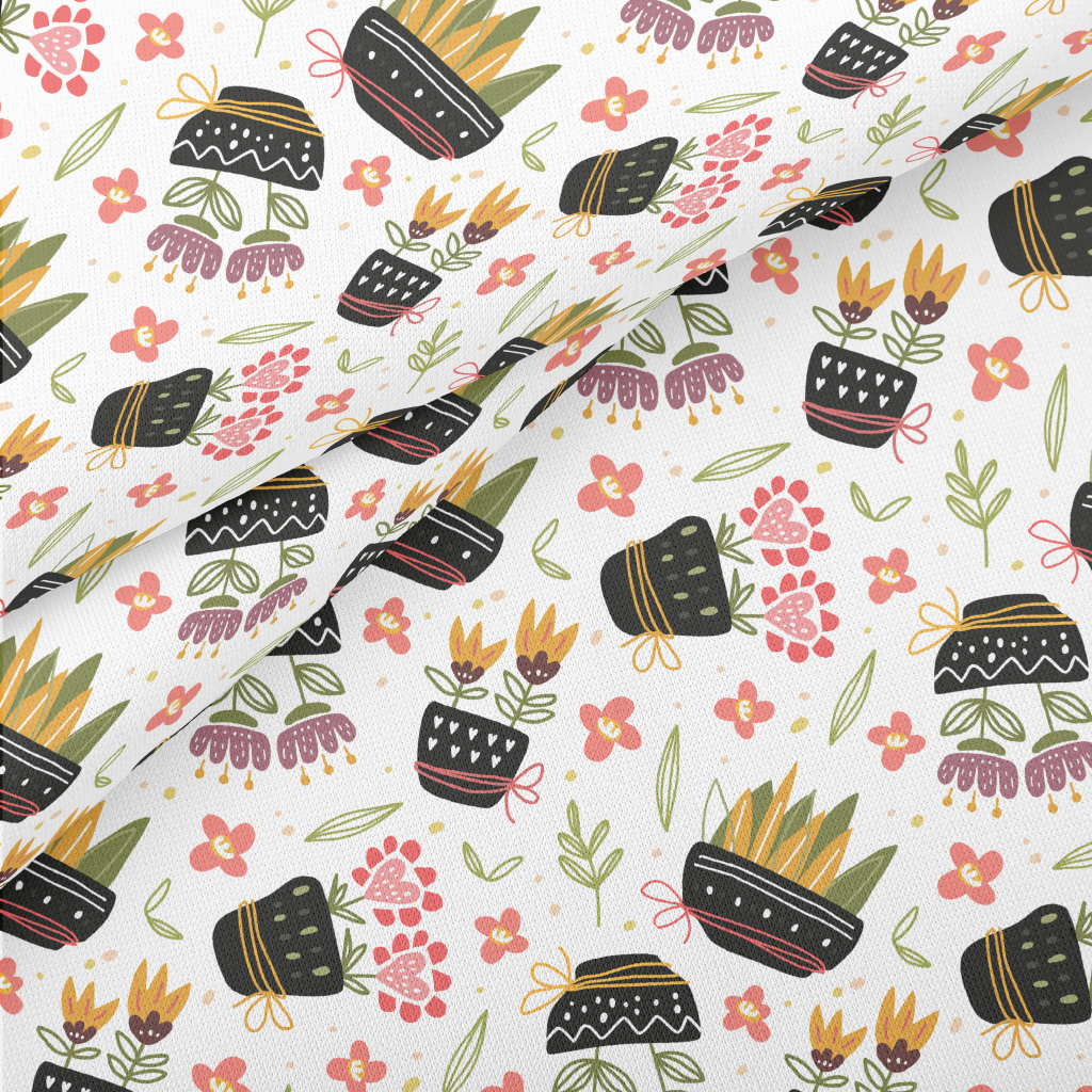 Classic Flower Pots Lightweight Cotton Poplin