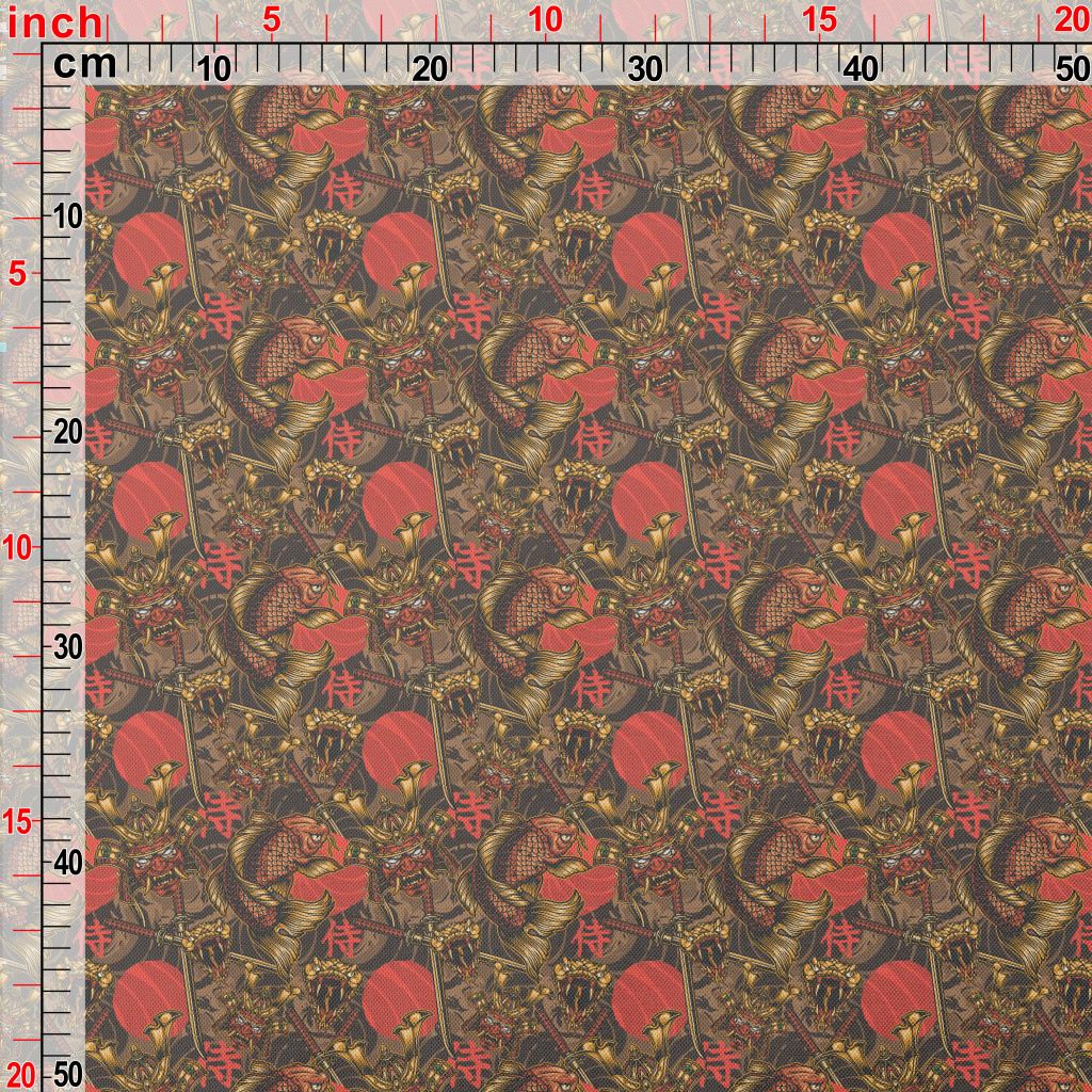 Fierce Japanese Samurai Pongee