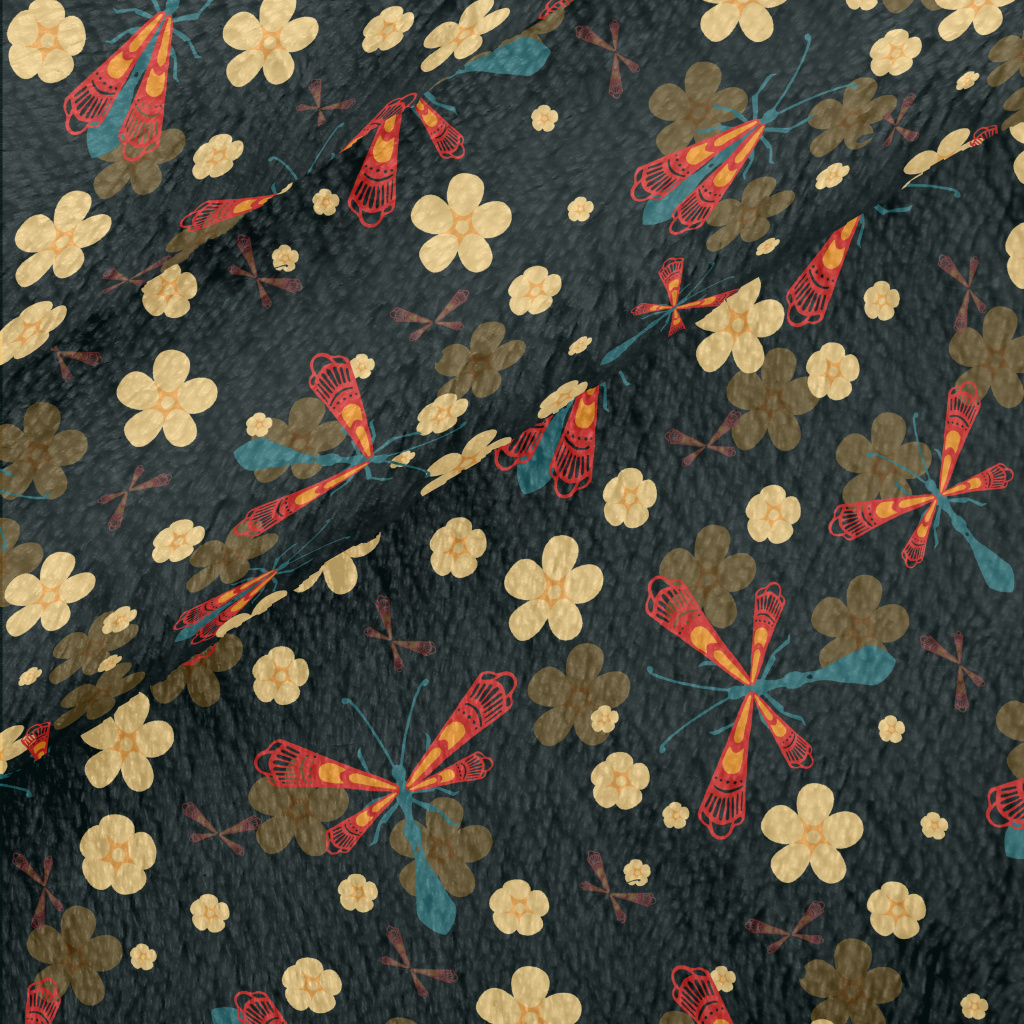 Flowers, Grass, Insects Minky