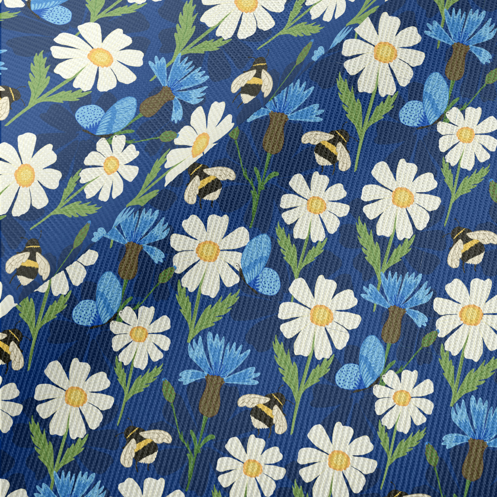 Big White Flower With Bee Midweight Cotton Poplin