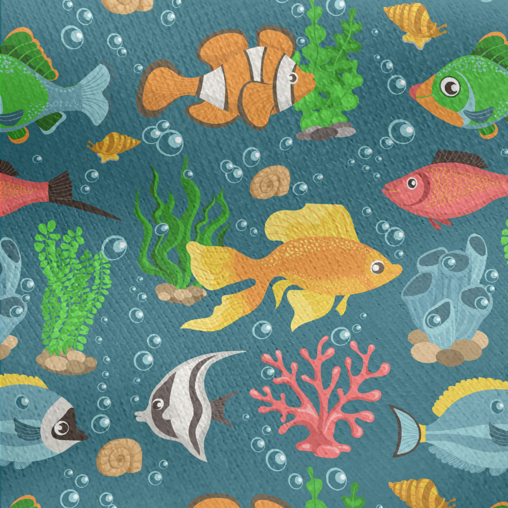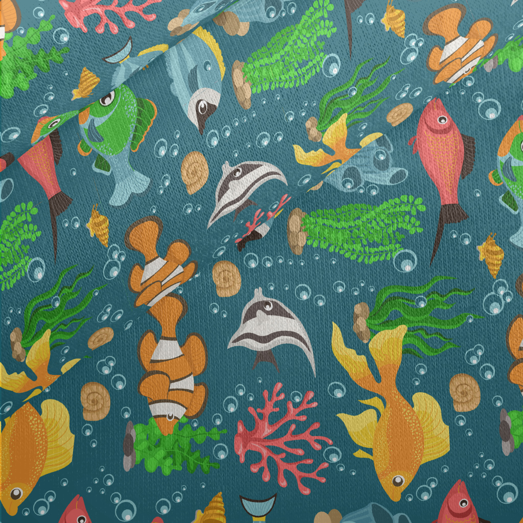 Colorful Underwater Fish Jersey Backed Fleece