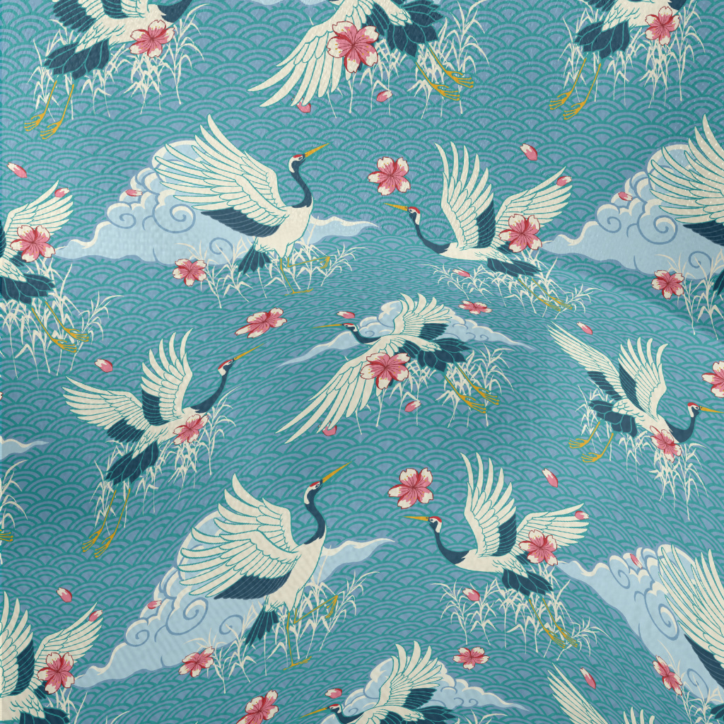 Beautiful Japanese Crane Lightweight Performance Linen