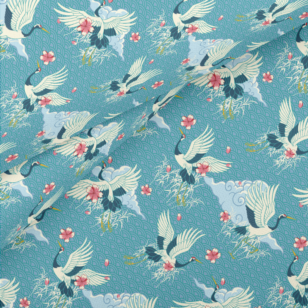 Beautiful Japanese Crane Lightweight Cotton Poplin