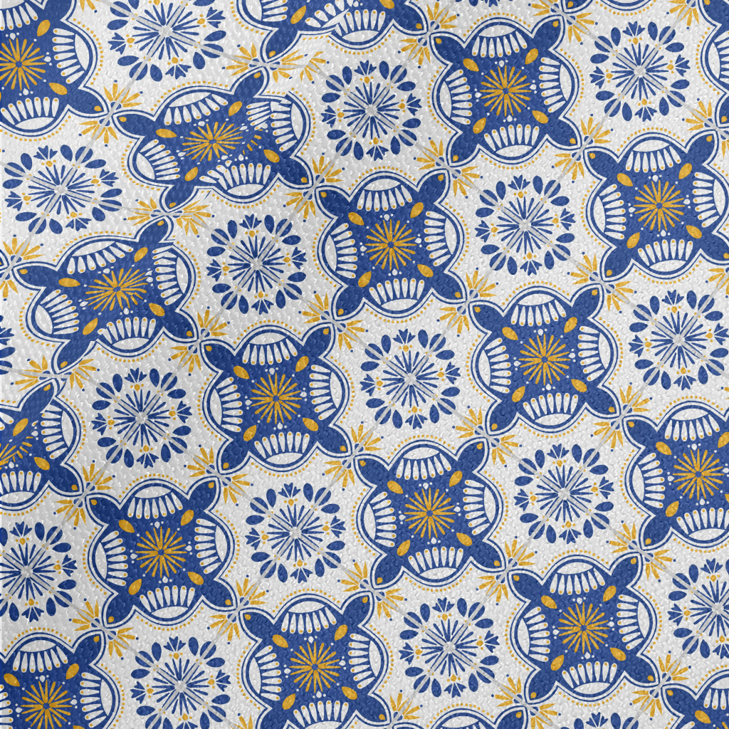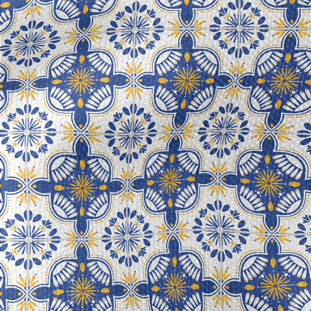 European Tiles With Flowers An Waterproof Canvas