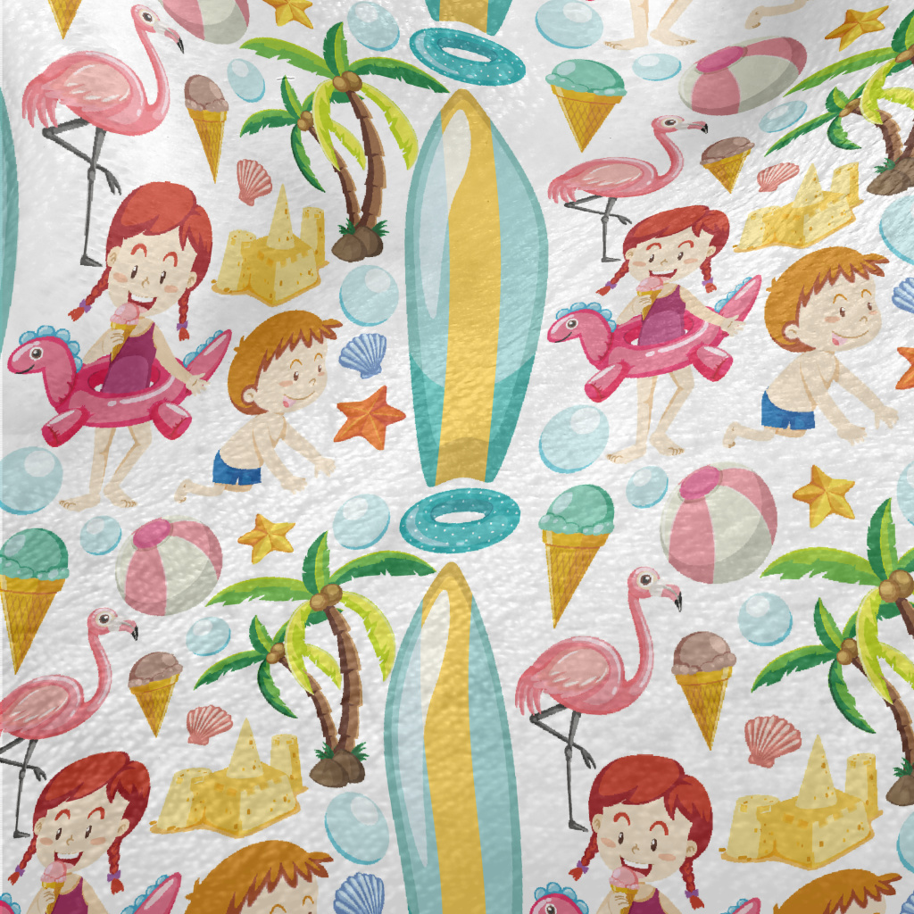 Children Playing On The Beach Minky