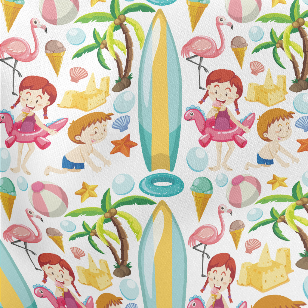 Children Playing On The Beach Lightweight Cotton Poplin