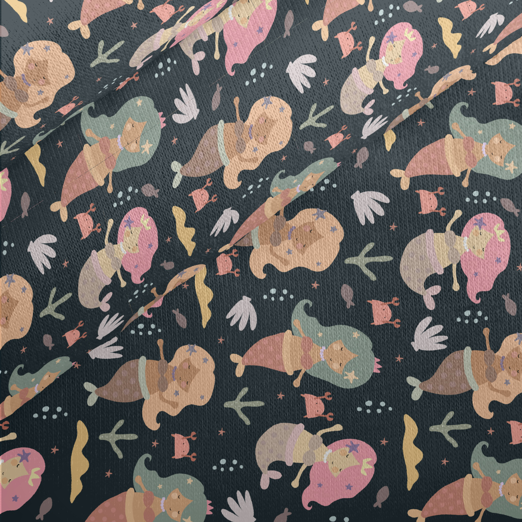 Retro Mermaid Jersey Backed Fleece