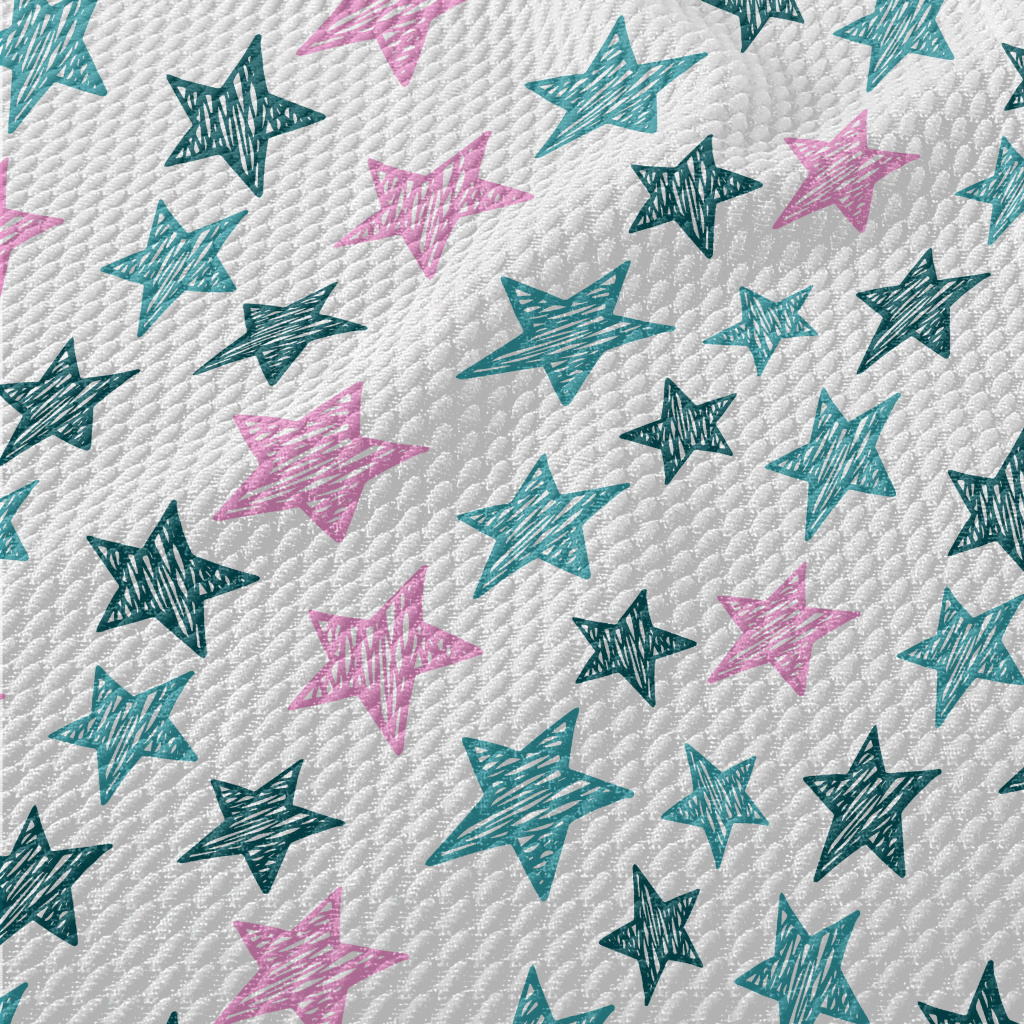 Hand Drawn Star Doodles Birdseye Piqué