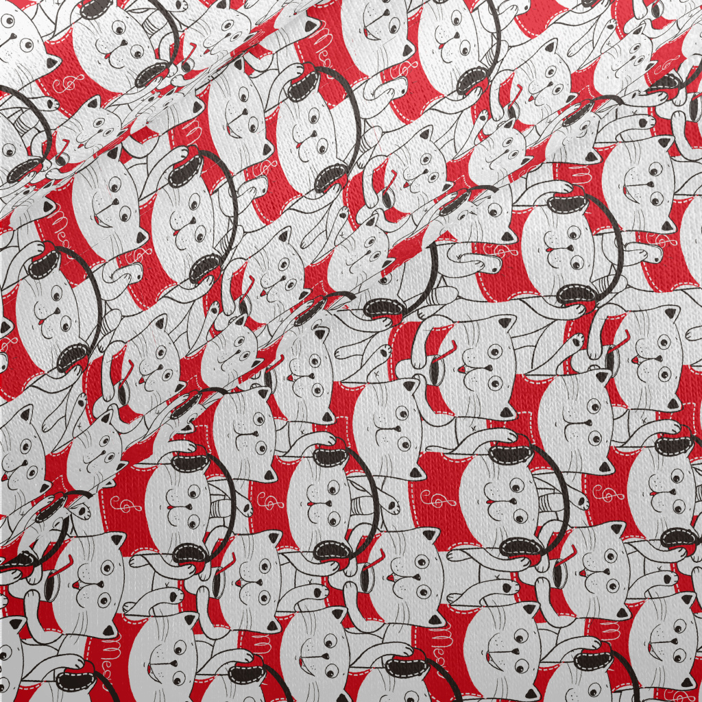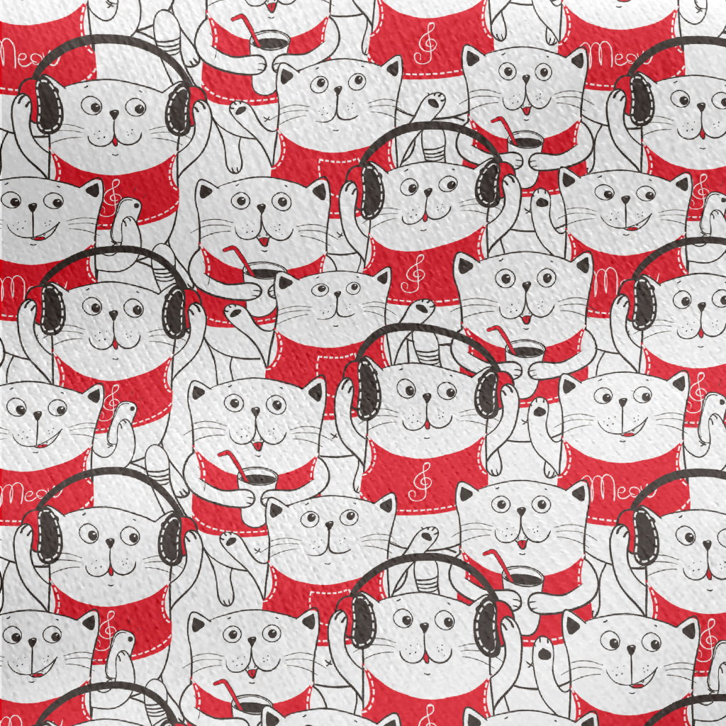 White Cat Illustration Jersey Backed Fleece