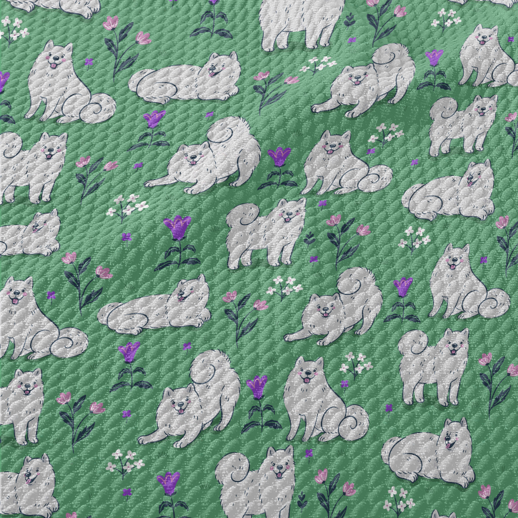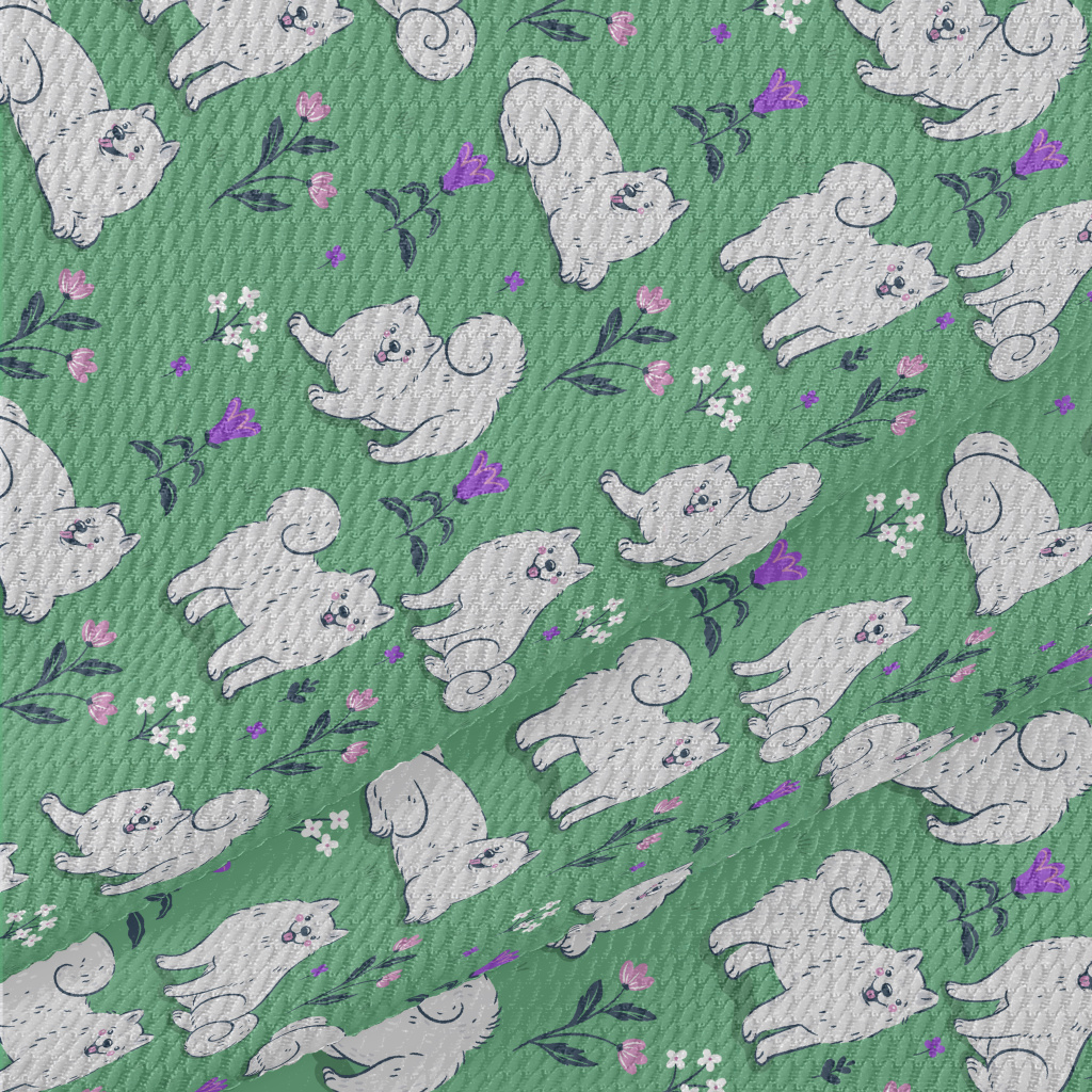 Samoyed On The Grass Birdseye Piqué