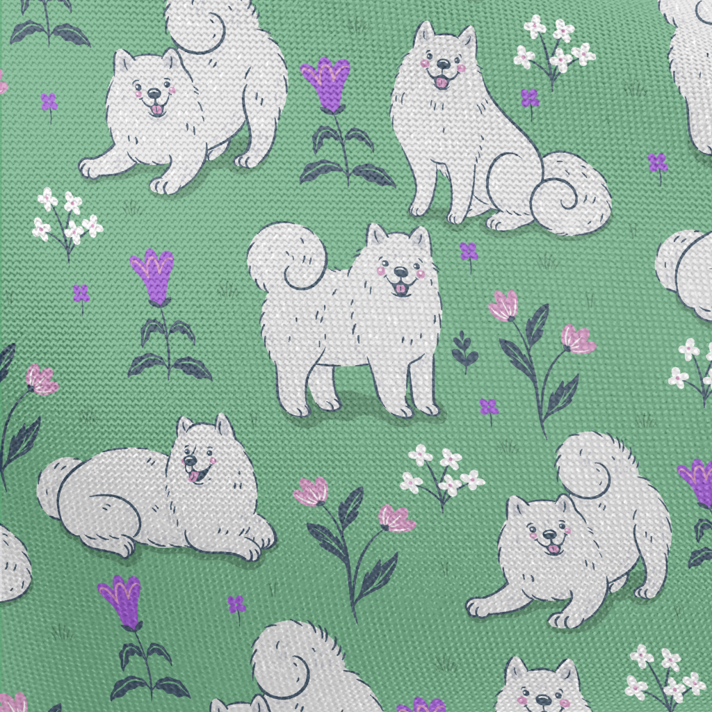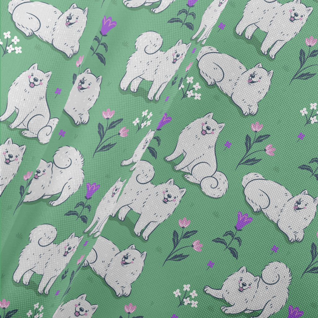 Samoyed On The Grass Pongee