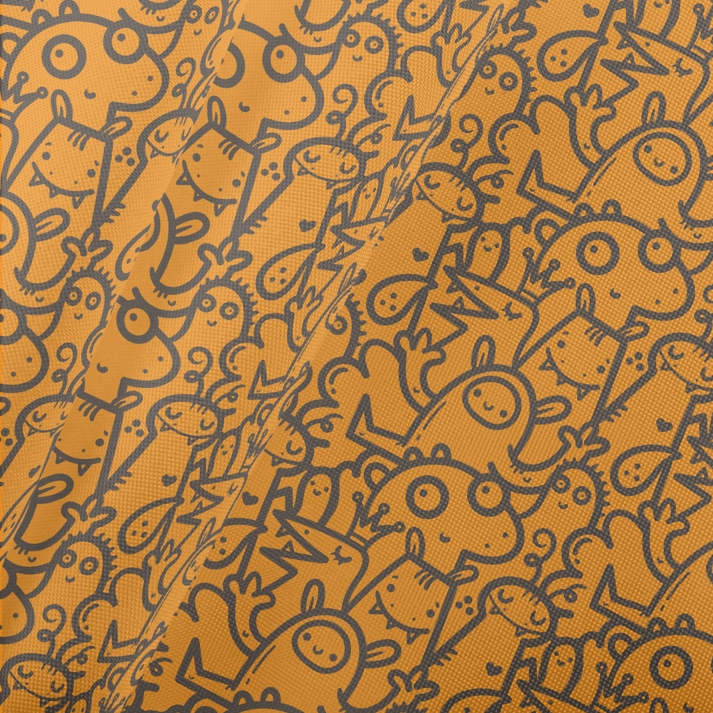 Cartoon Monster Doodle Pongee