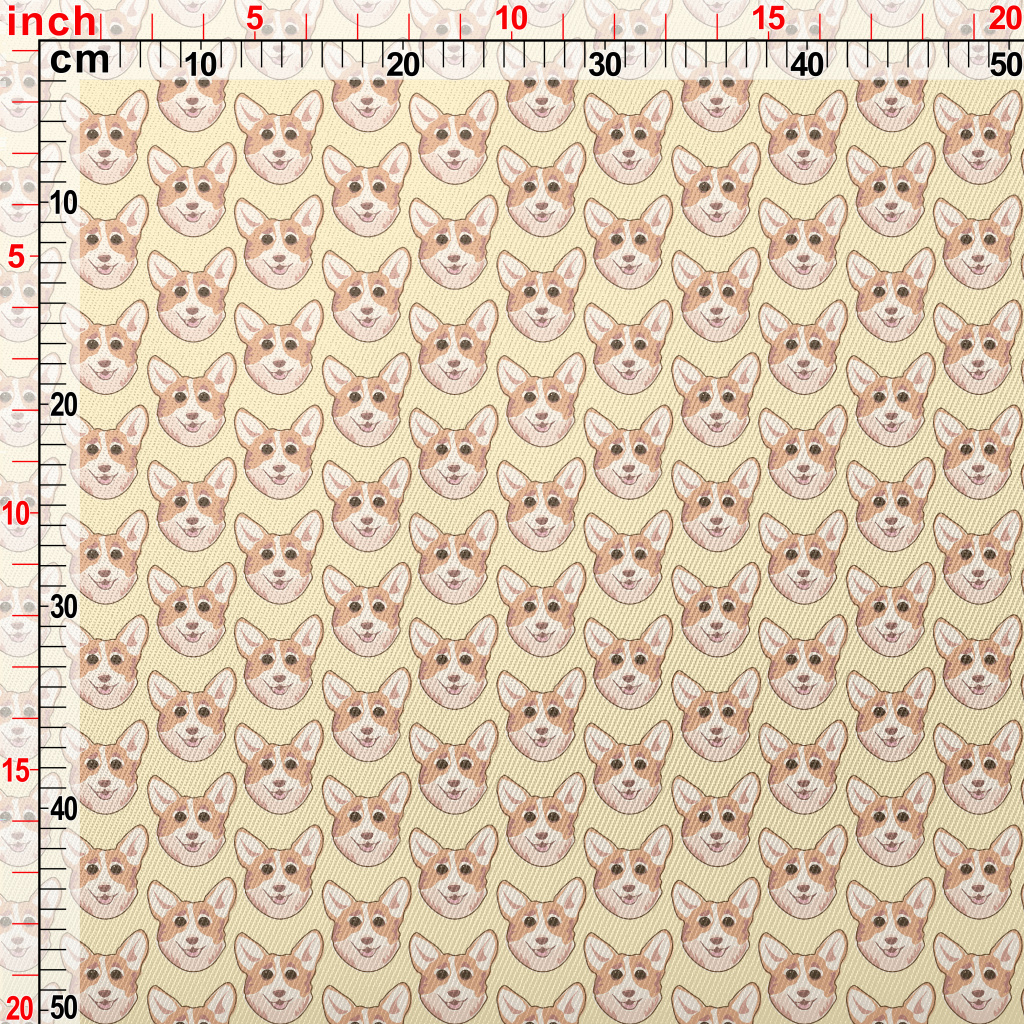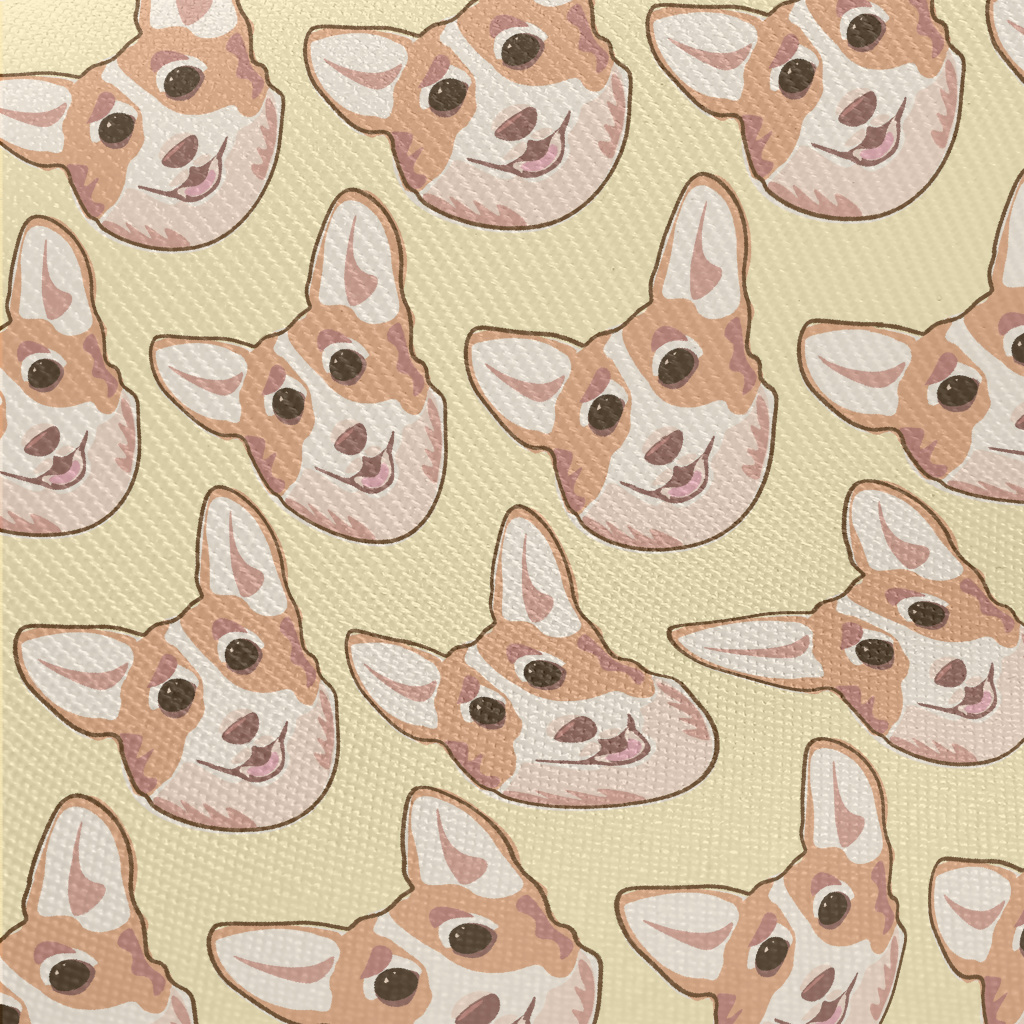 Cartoon Doodle Corgi Midweight Cotton Poplin