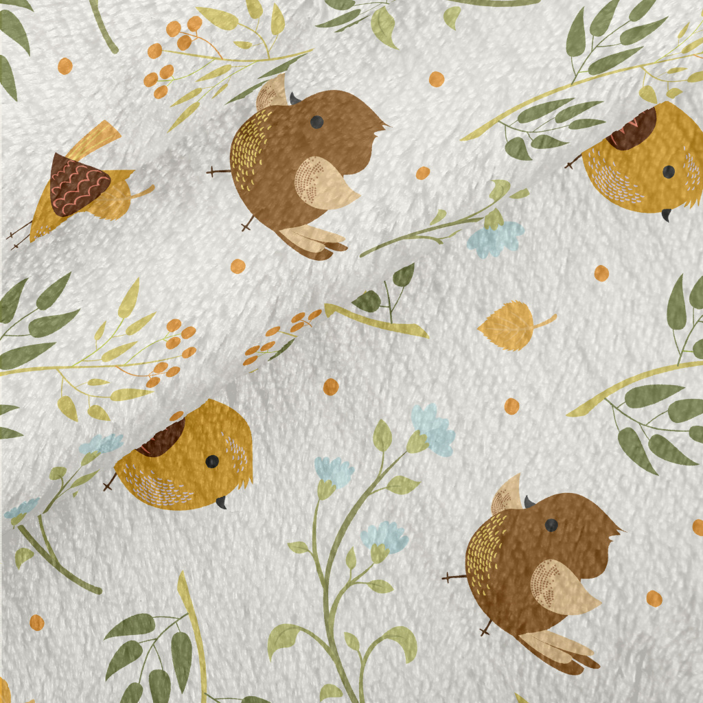 Sparrows And Flowers Minky