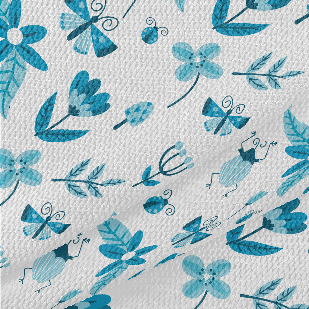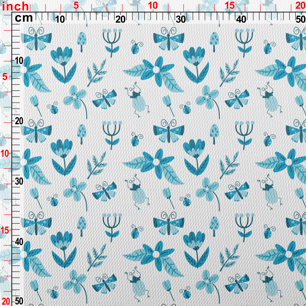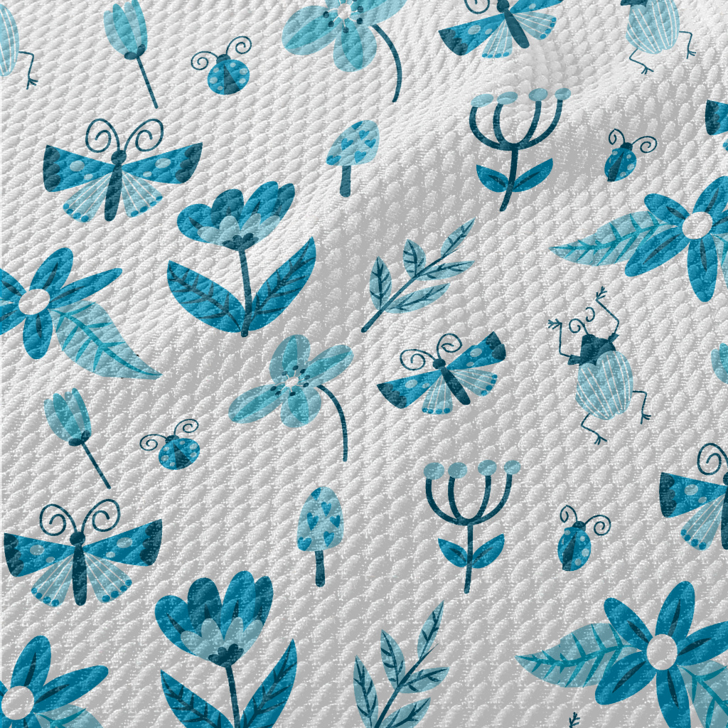 Blue Floral Circle Pattern Birdseye Piqué
