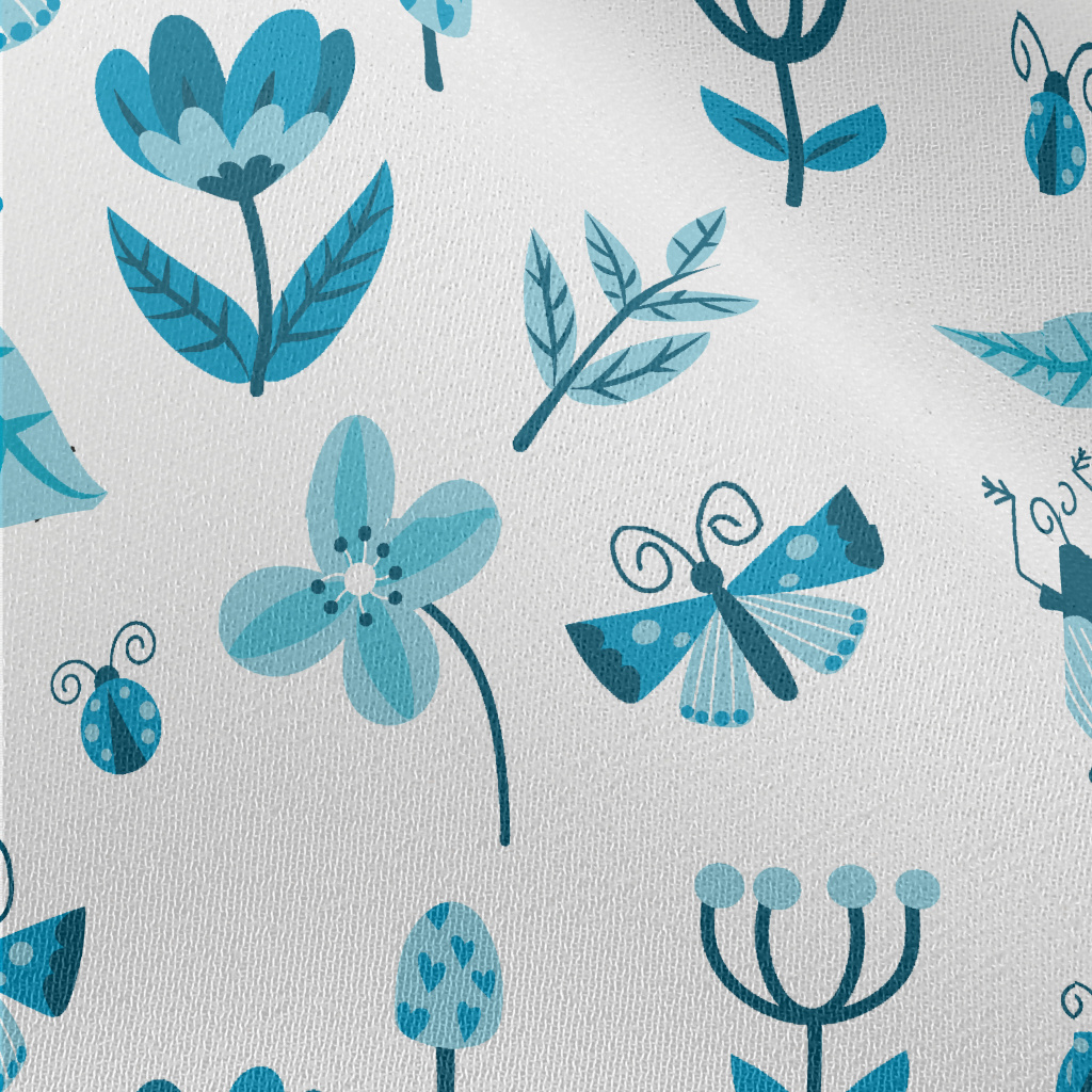 Blue Floral Circle Pattern Chiffon