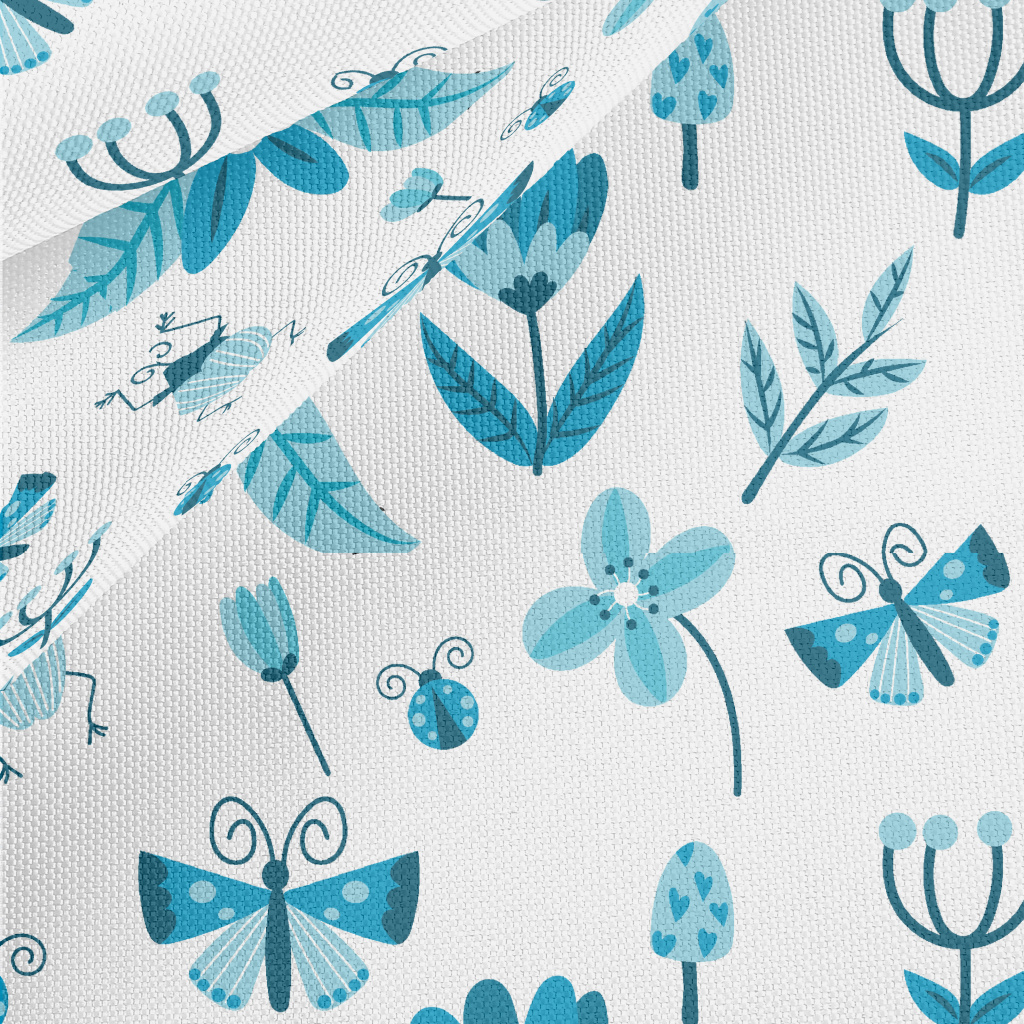 Blue Floral Circle Pattern Waterproof Oxford