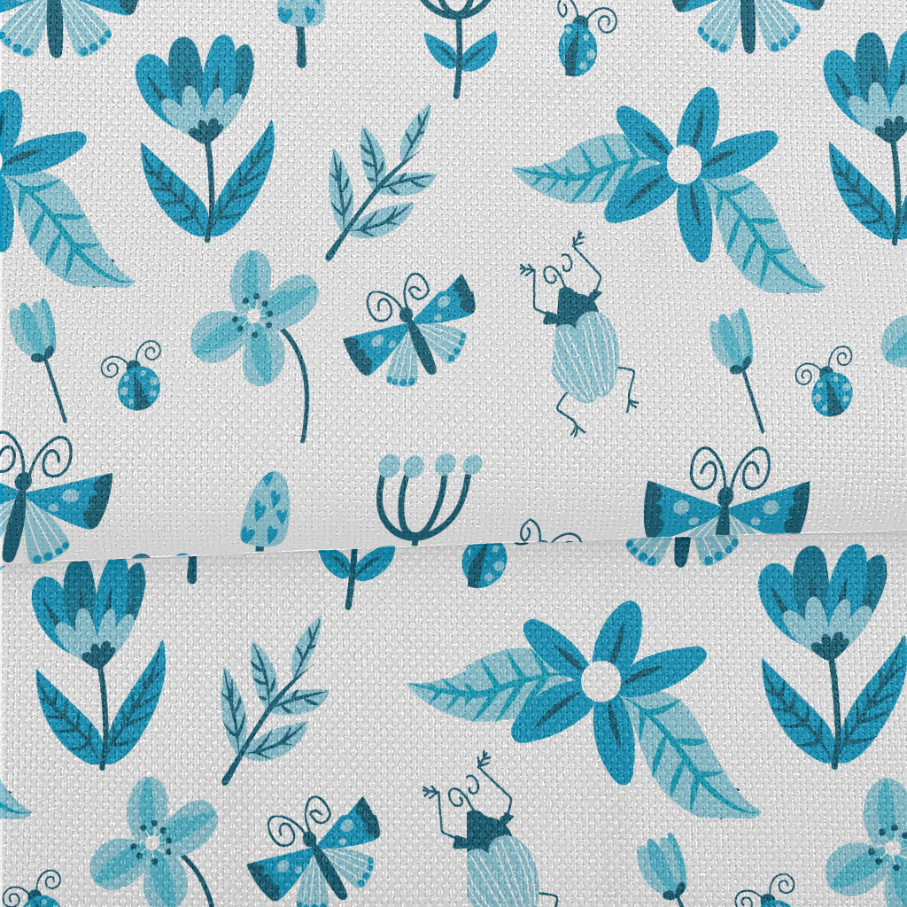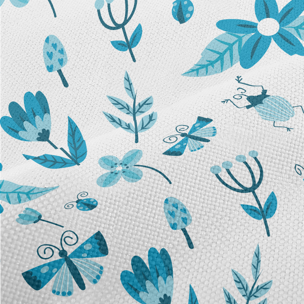 Blue Floral Circle Pattern Performance Linen