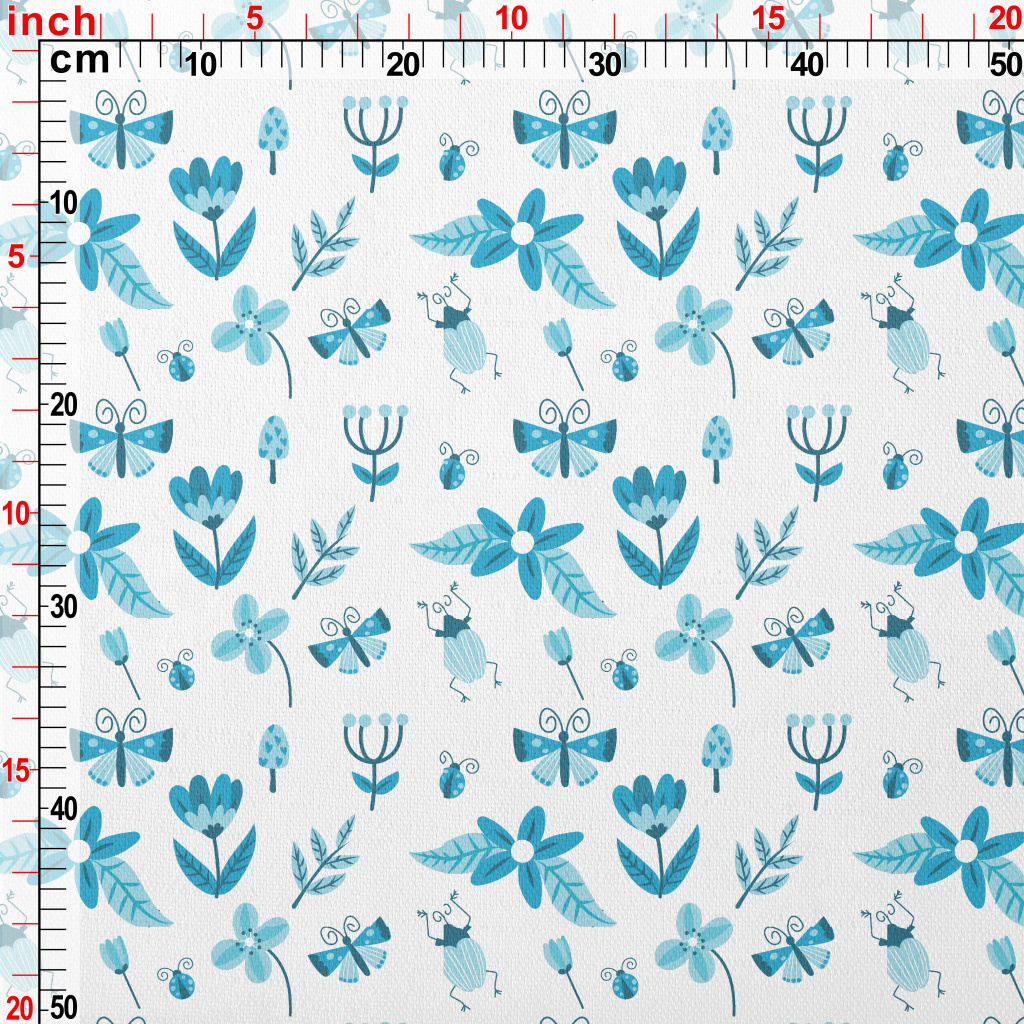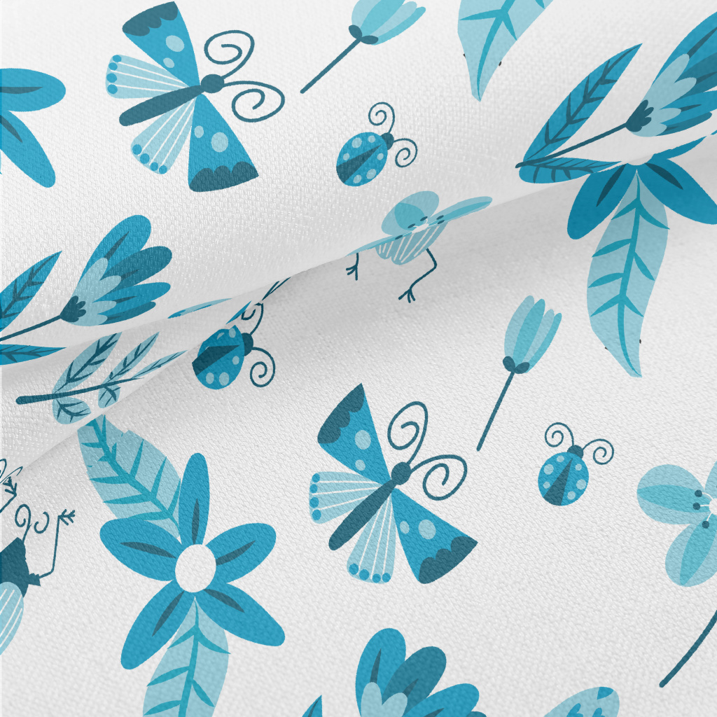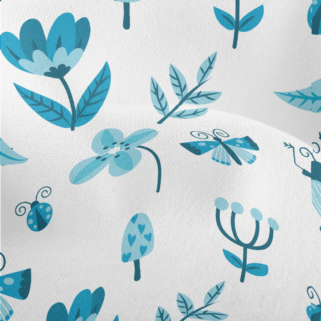 Blue Floral Circle Pattern Lightweight Performance Linen