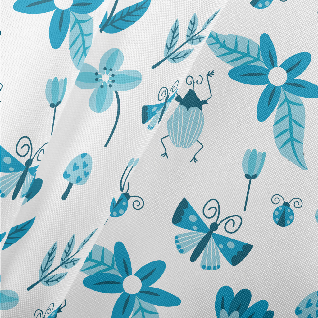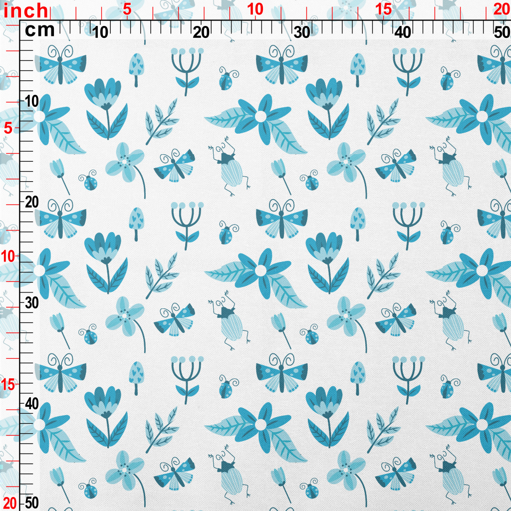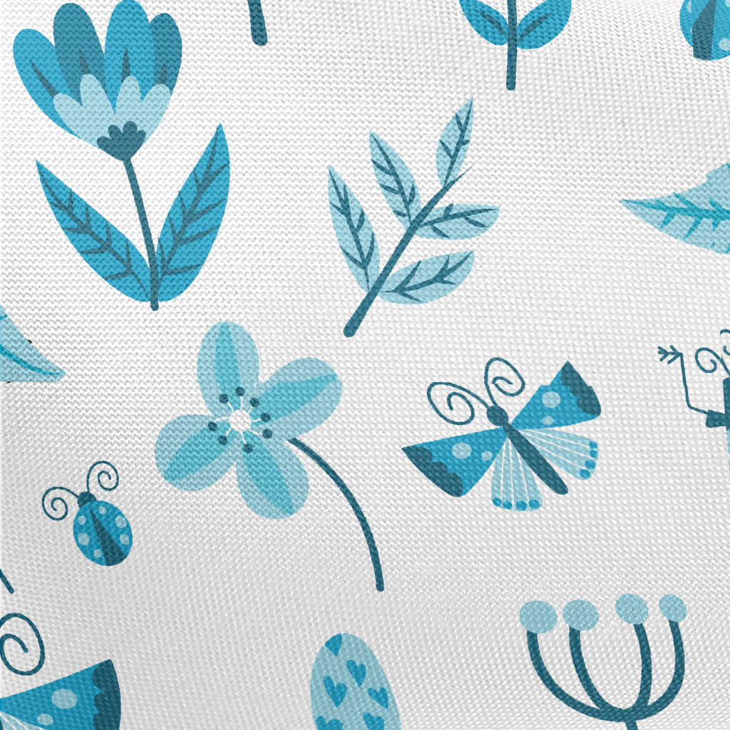 Blue Floral Circle Pattern Pongee