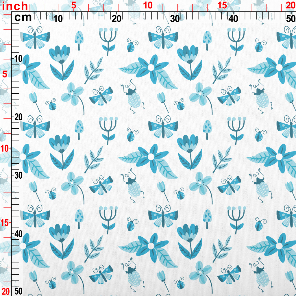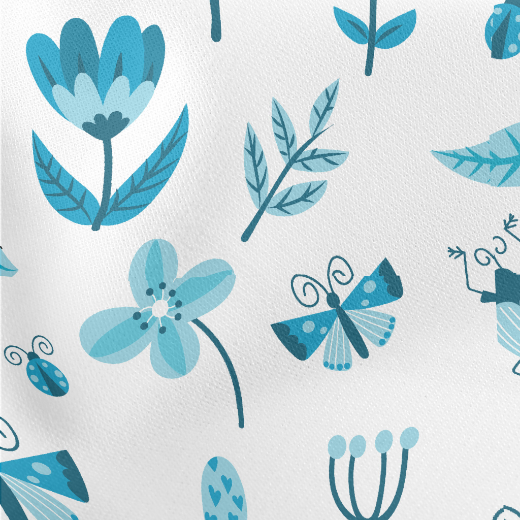Blue Floral Circle Pattern Lightweight Cotton Poplin