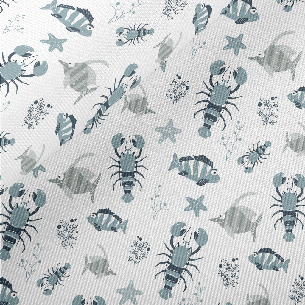 Hand Drawn Marine Life Twill