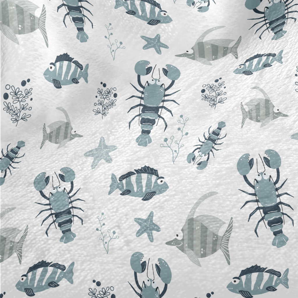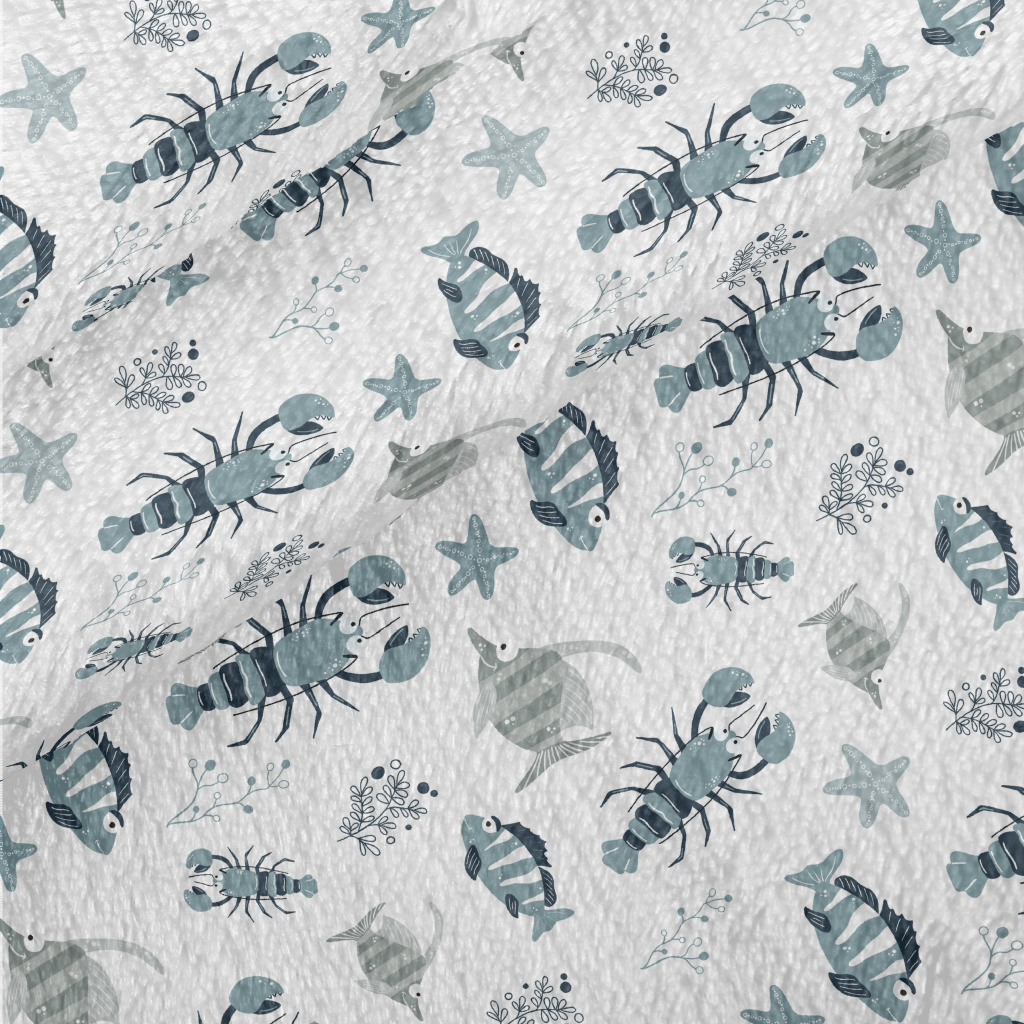 Hand Drawn Marine Life Minky