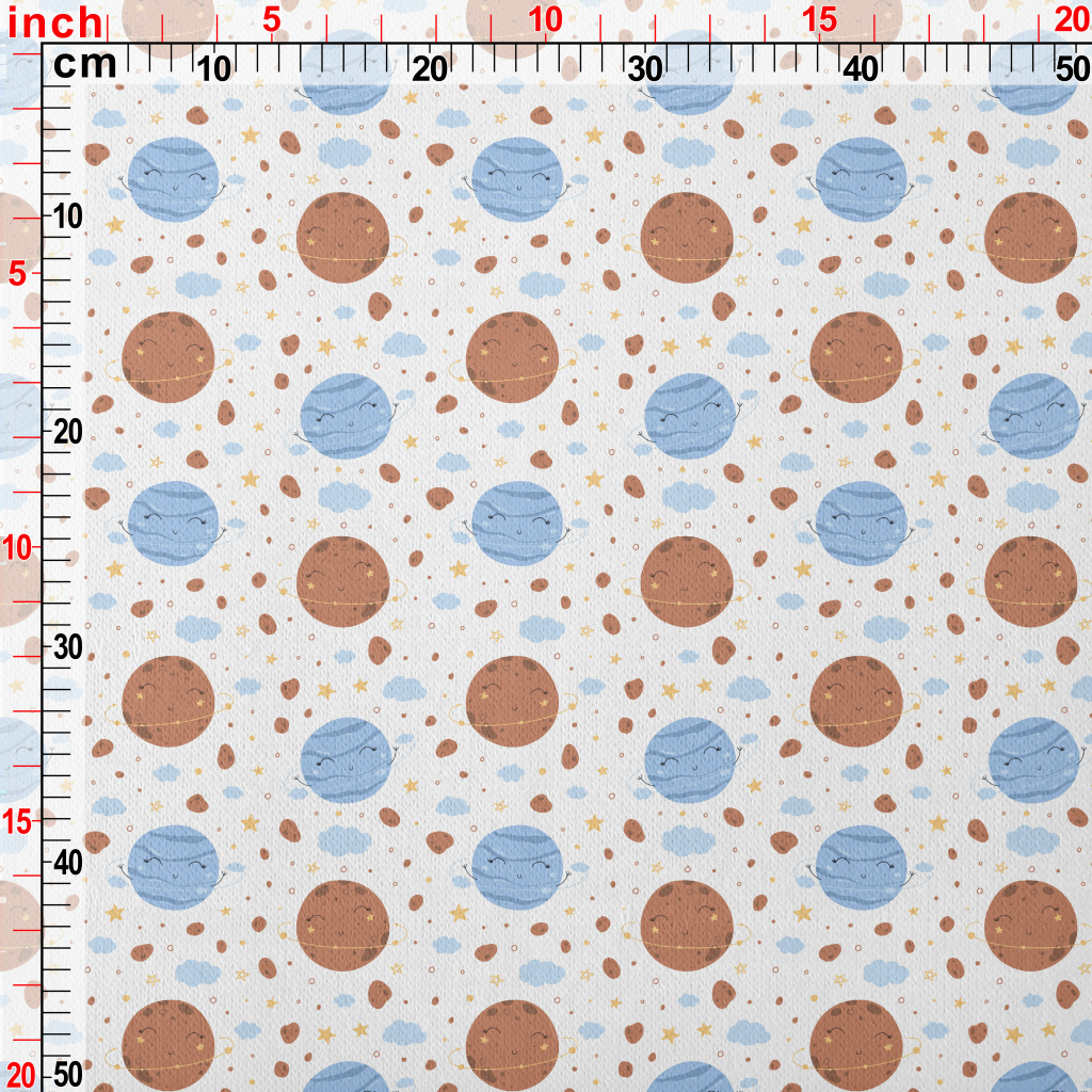 Cute Space Planets Jersey Backed Fleece