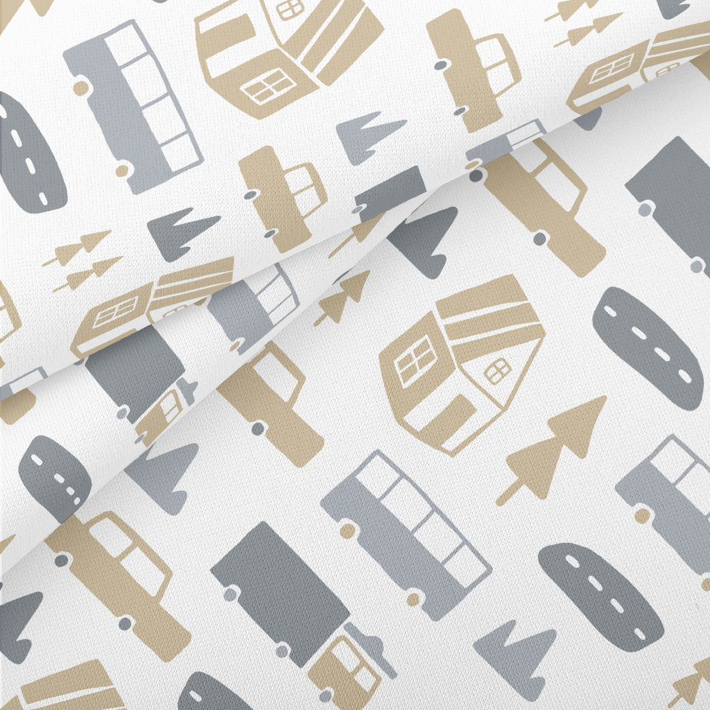 House And Car Graffiti Lightweight Cotton Poplin