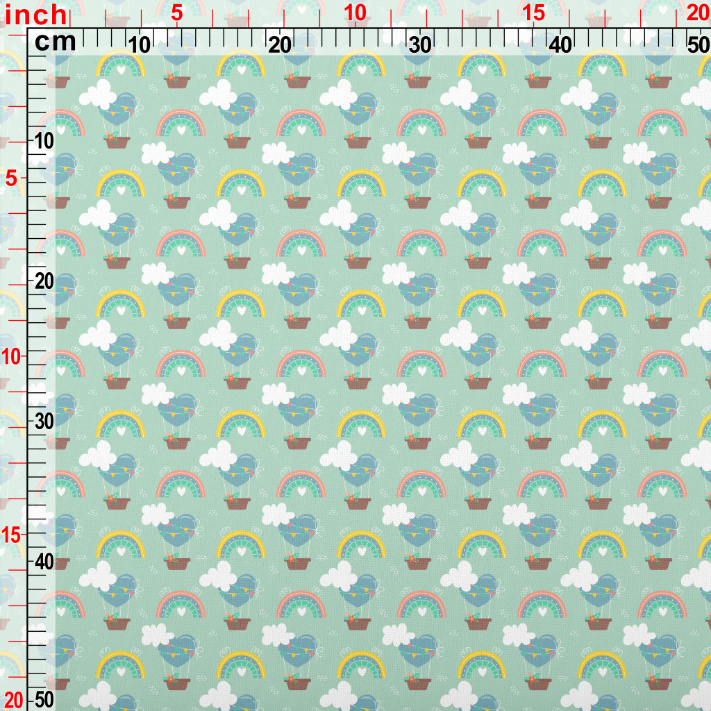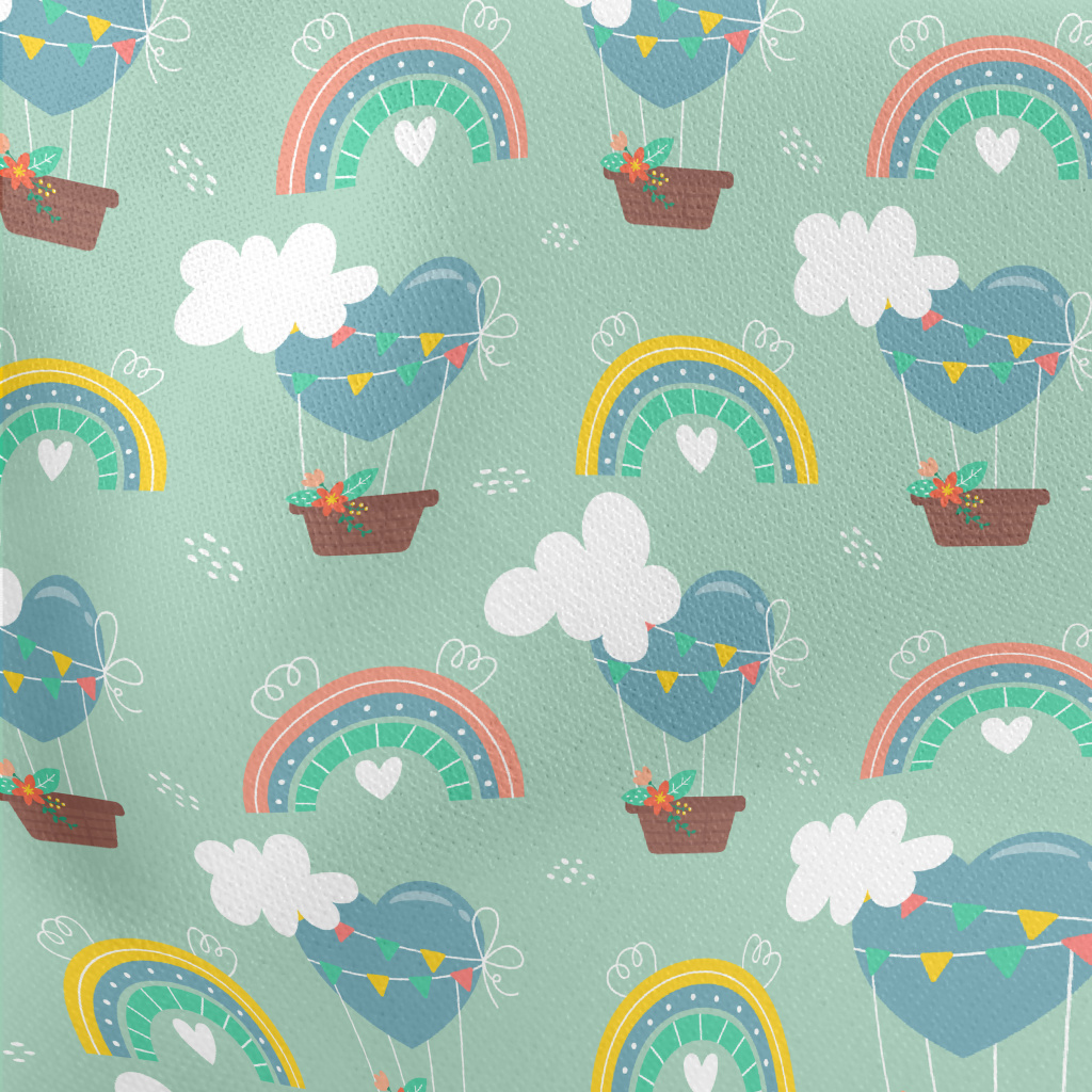 Love Hot Air Balloon And Rainb Lightweight Cotton Poplin