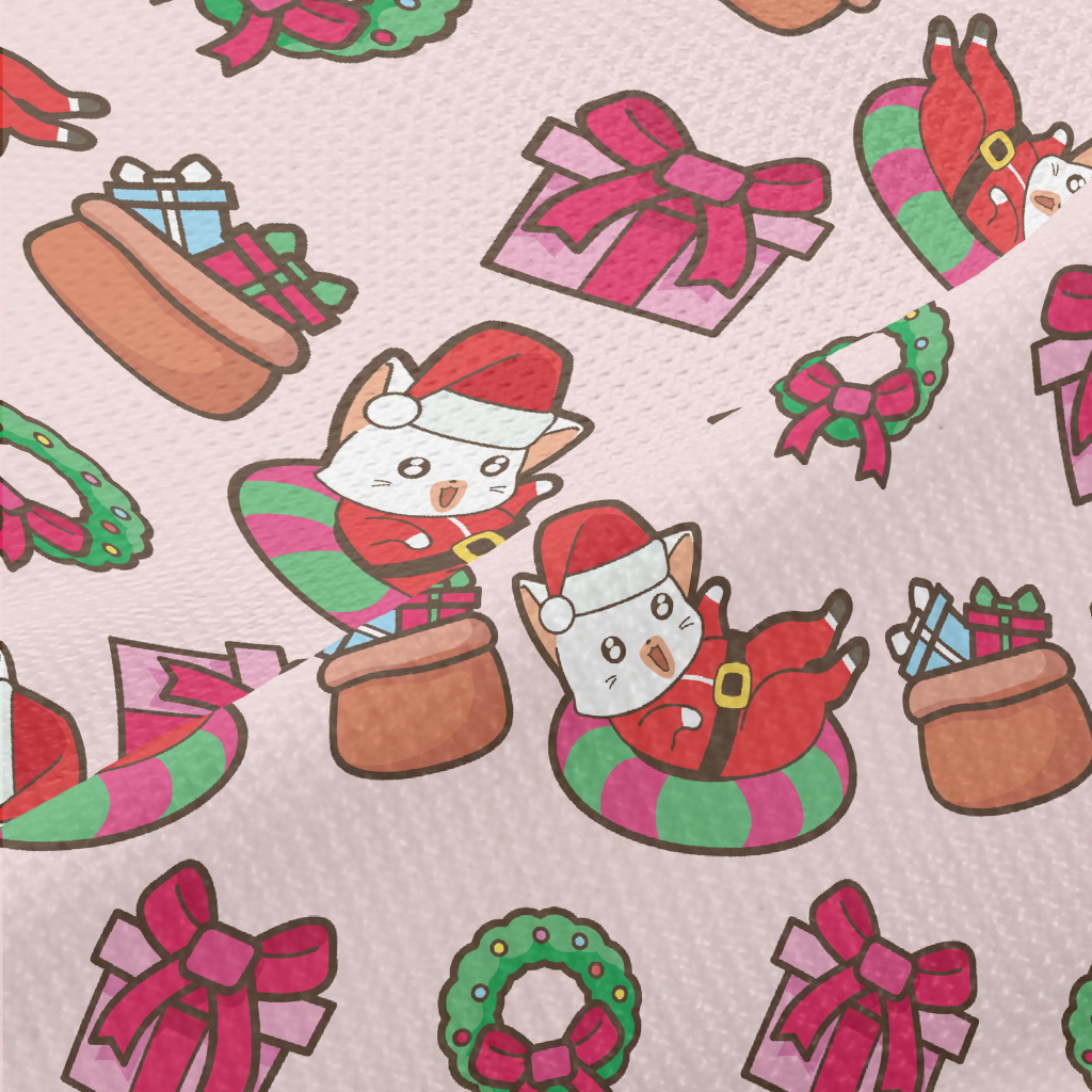 Playful Cat Santa Claus Piqué