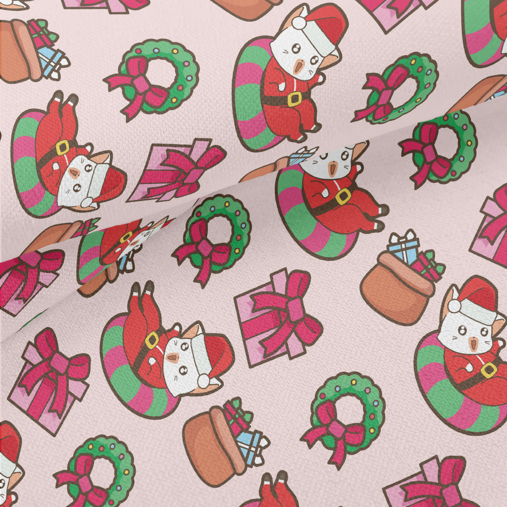 Playful Cat Santa Claus Lightweight Performance Linen