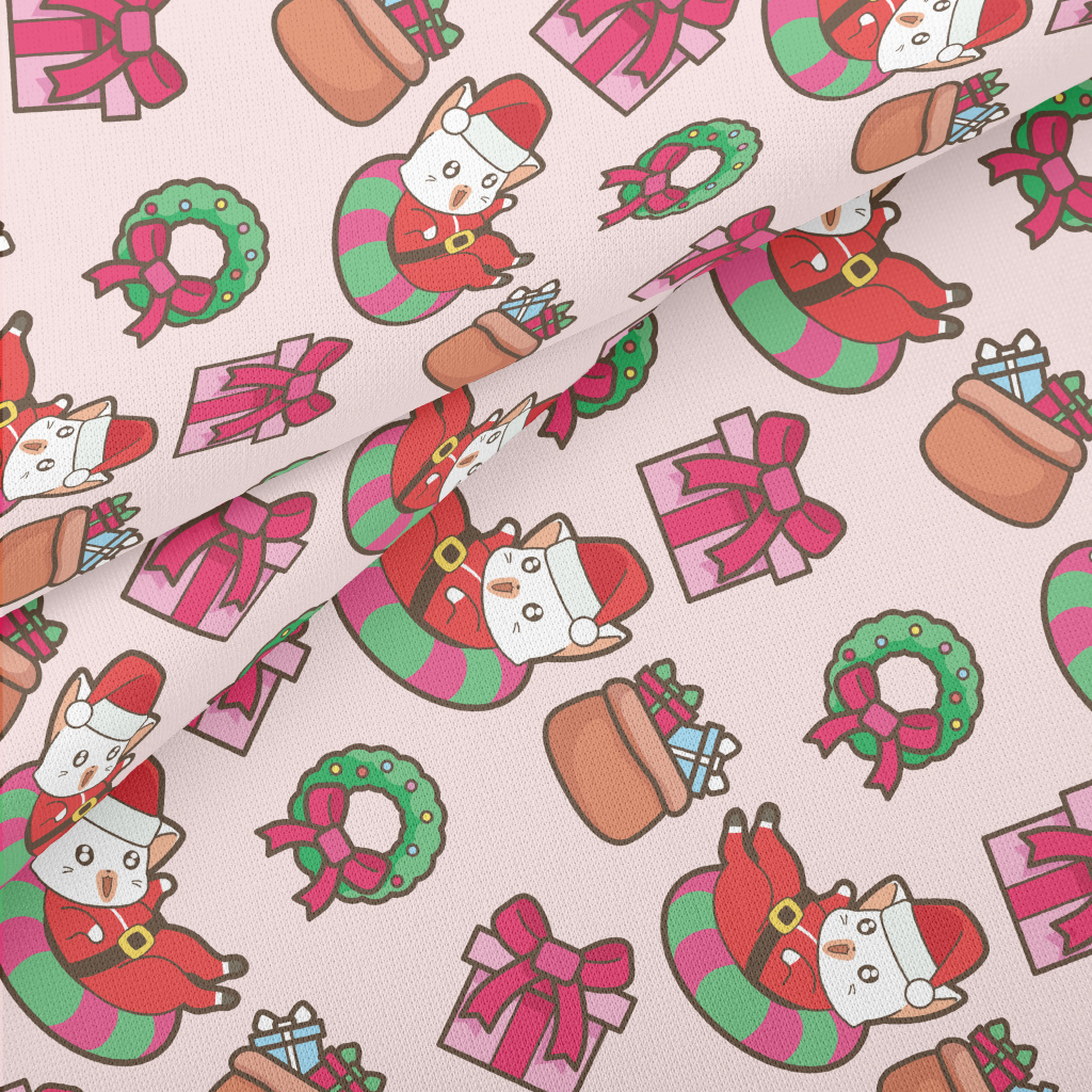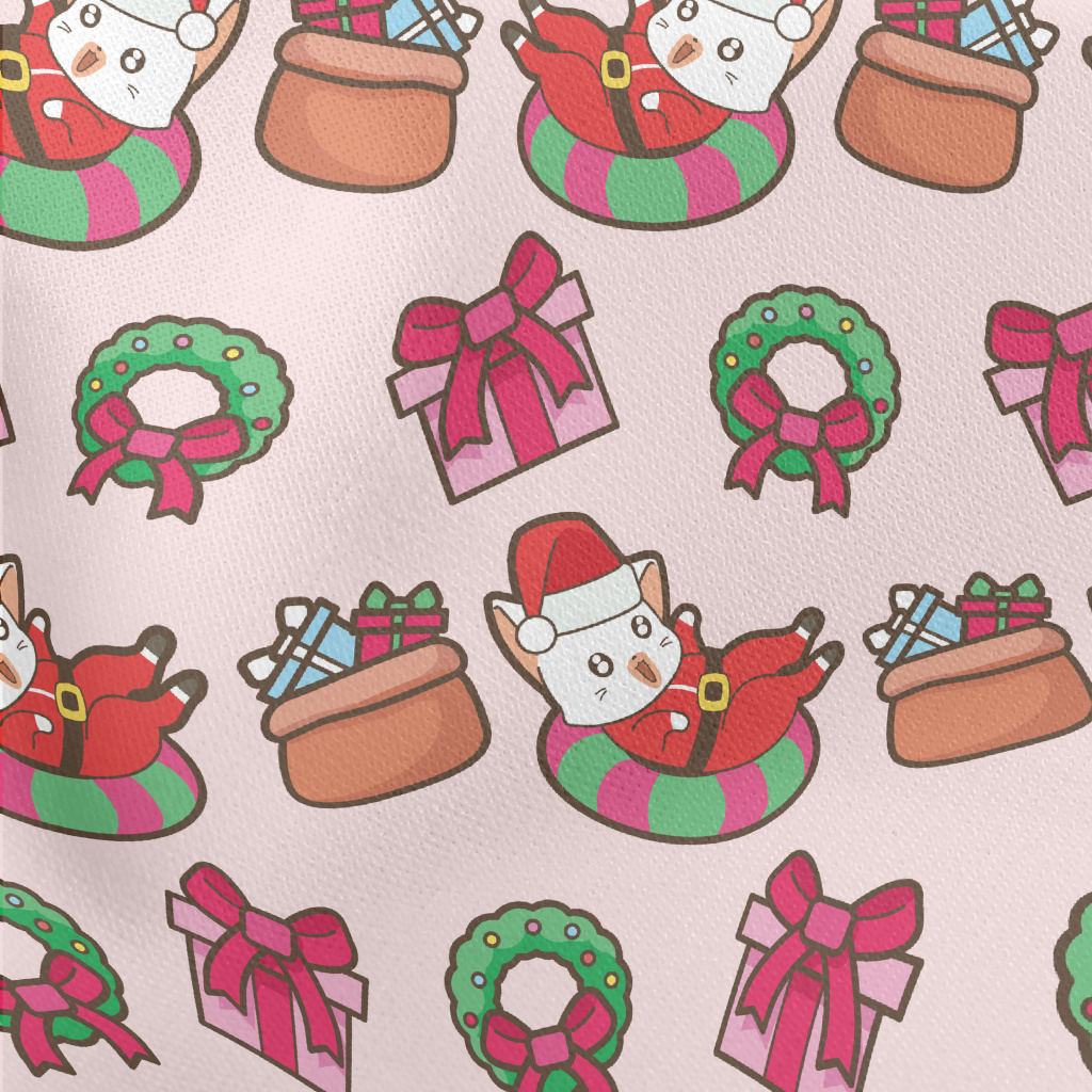 Playful Cat Santa Claus Lightweight Cotton Poplin