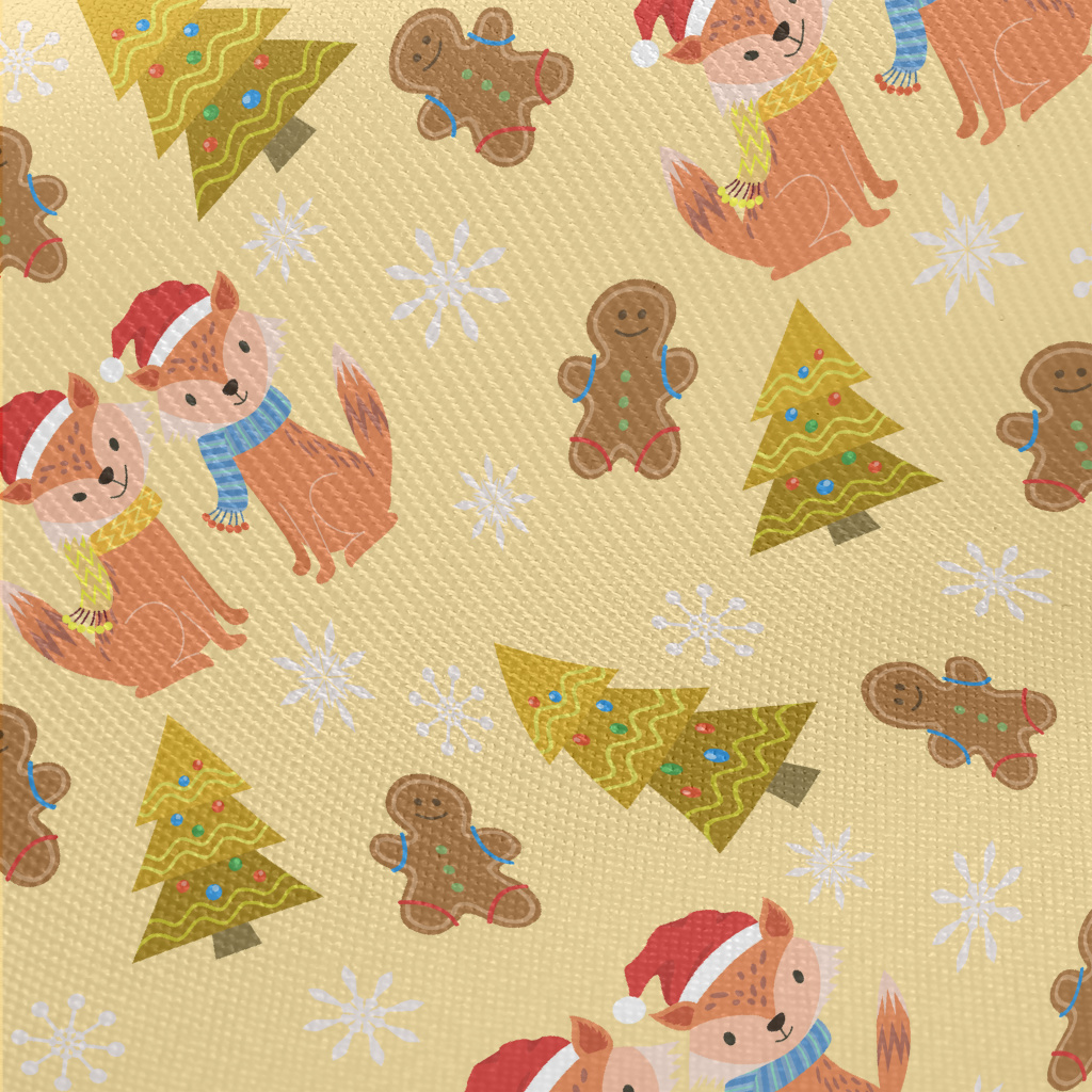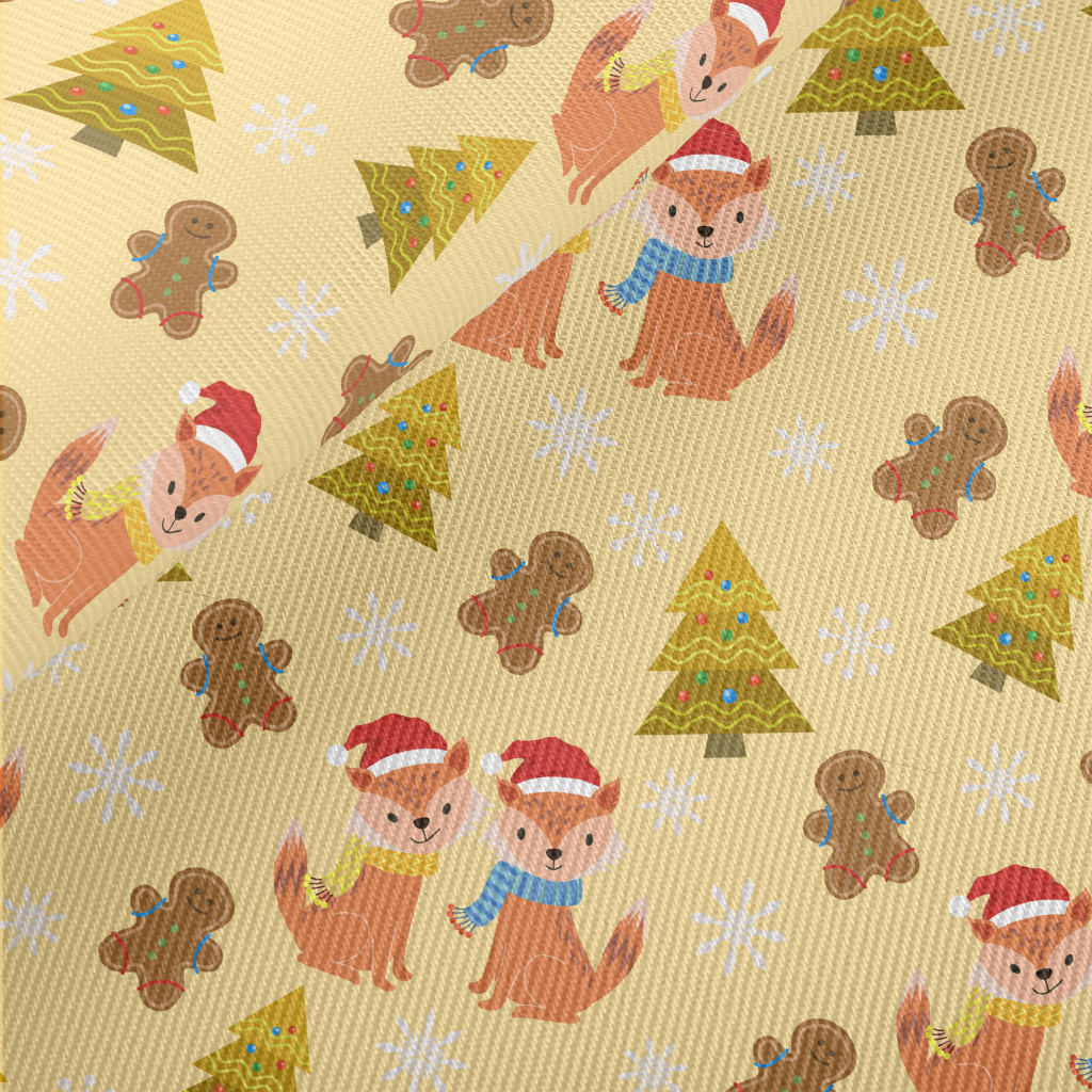 Cute Fox Celebrates Christmas Midweight Cotton Poplin