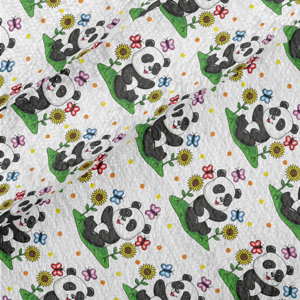 Cartoon Panda Teasing Butterfl Minky