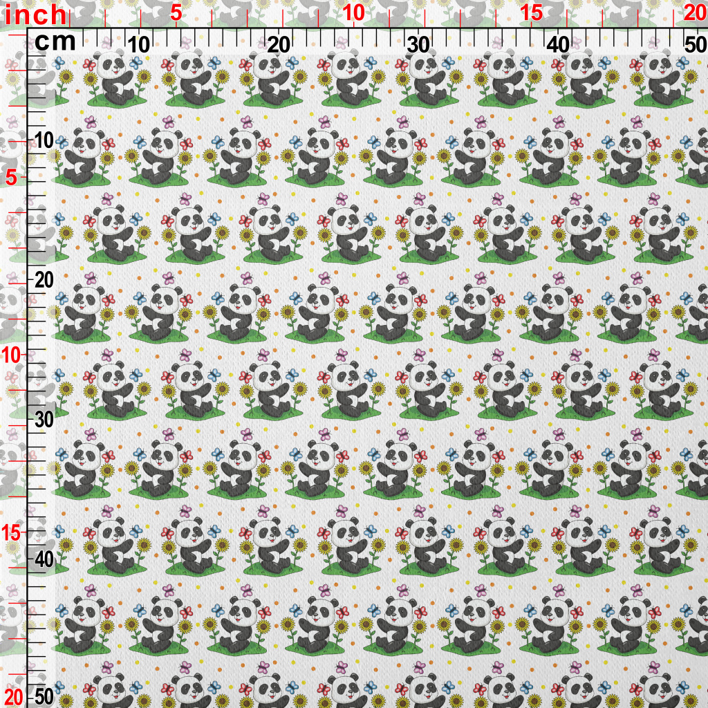 Cartoon Panda Teasing Butterfl Jersey Backed Fleece