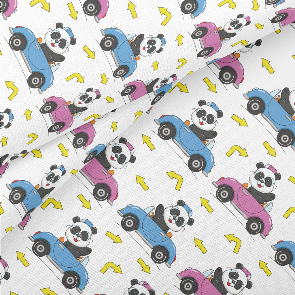 Trendy Panda Driving Lightweight Cotton Poplin